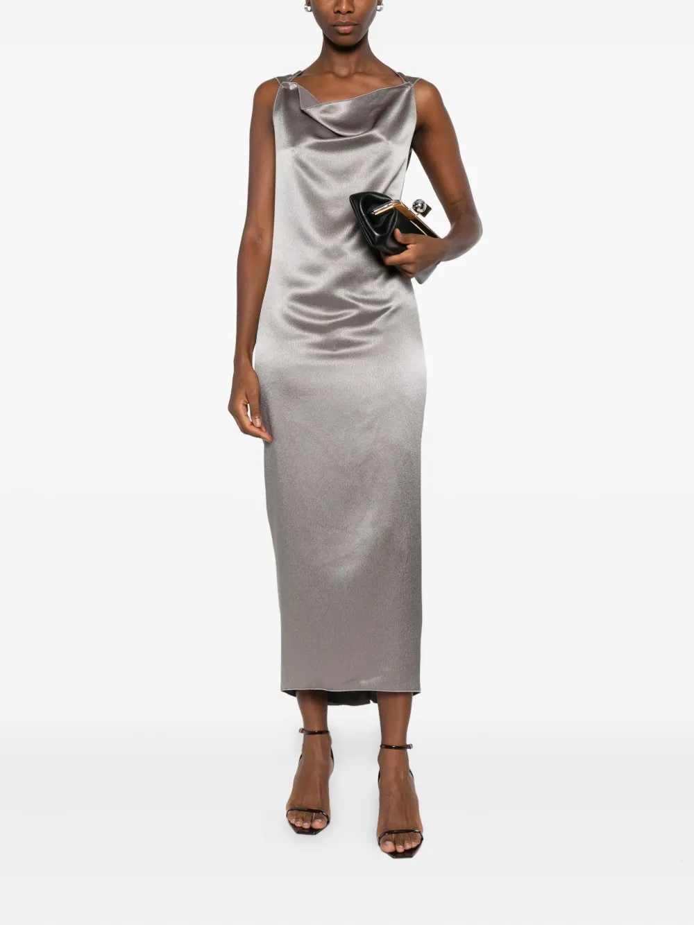 Серый воротник-хомут пояс на шее без рукавов длина миди асимметричный подол