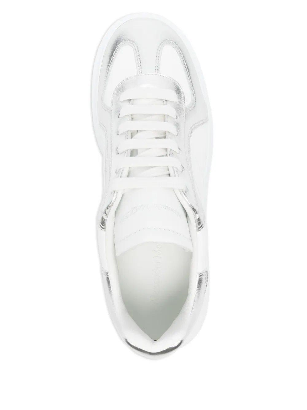 Верх из белой кожи, серебристая металлическая вставка, шнуровка, плоская подошва, мягкий воротник