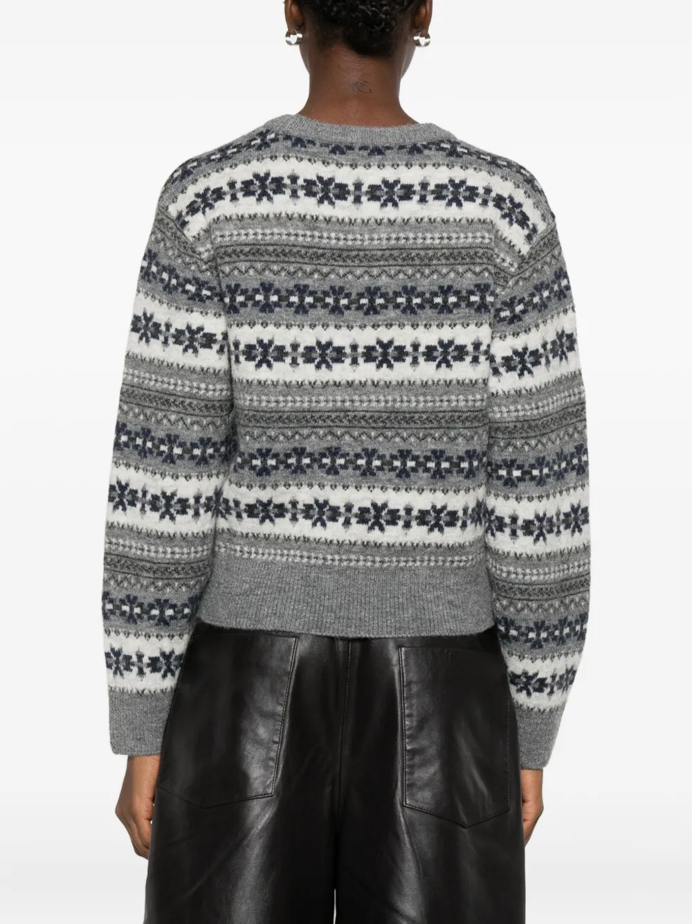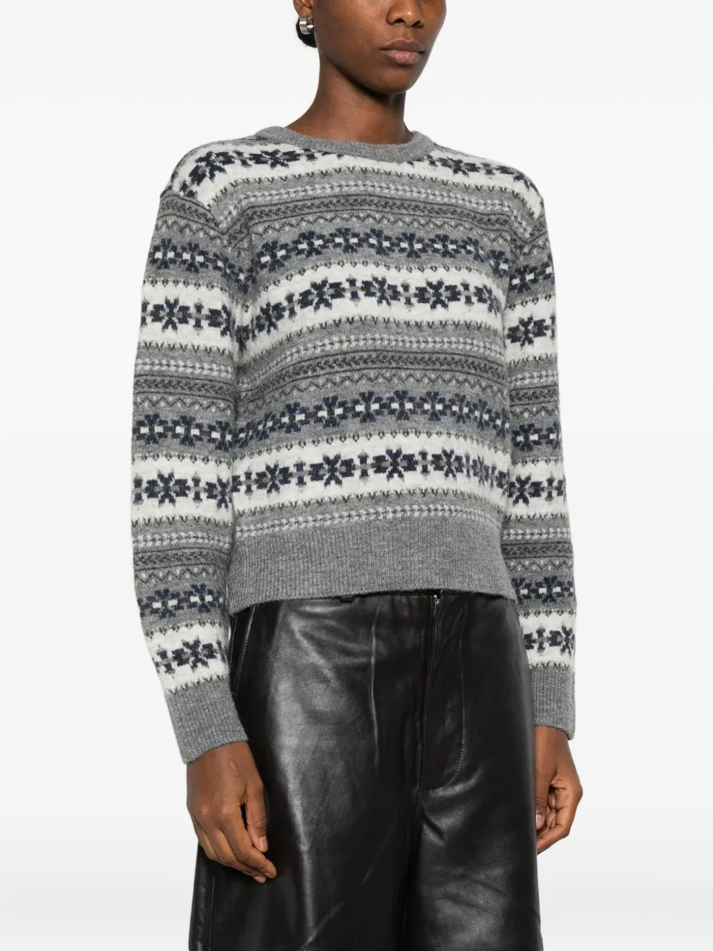 Серый свитер с узором в стиле фэйр-Айл, круглый вырез, длинные рукава, рубчатые манжеты, рубчатый низ