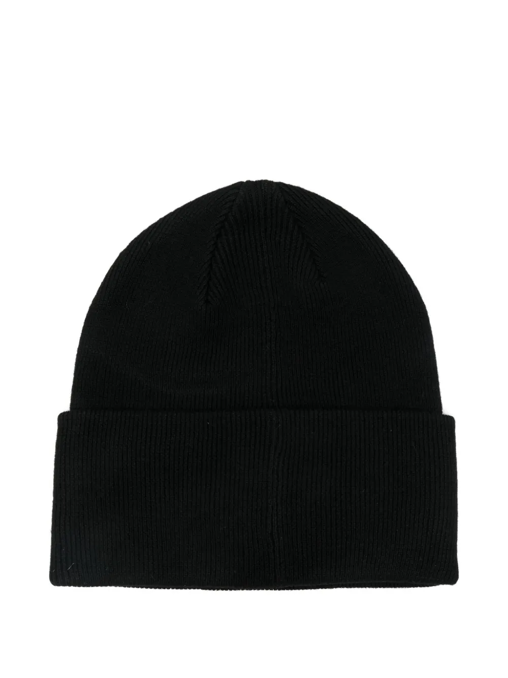 Черная шапка с ребристой текстурой, вышитым логотипом и отворотом