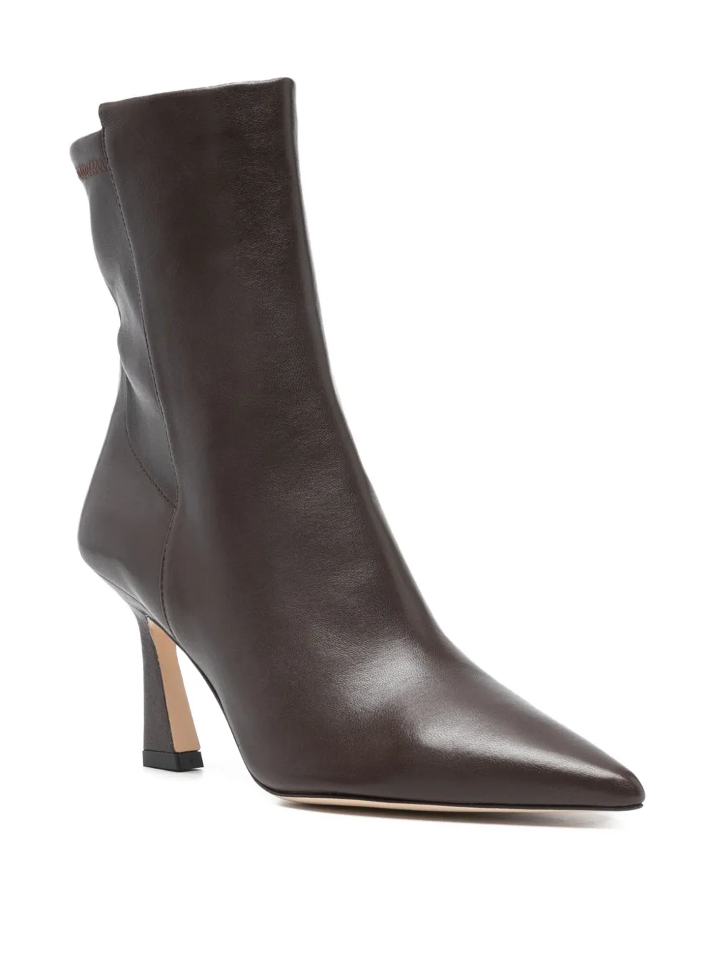 Коричневый кожа заостренный носок фигурный каблук эластичный верх