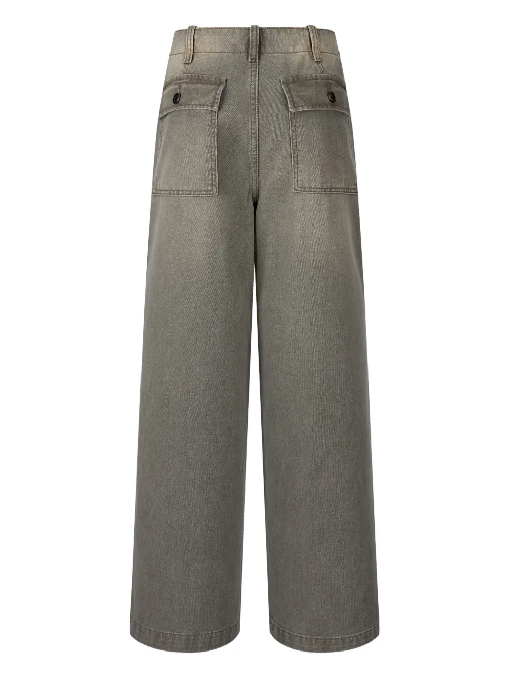 Серый множество карманов широкие брючины застежка на пуговицу и молнию плиссированная передняя часть