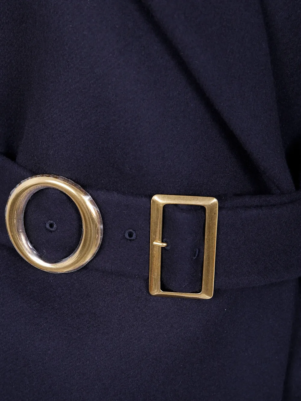 Темно-синий шерсть запах пояс на завязках пряжка под золото отворот с лацканами