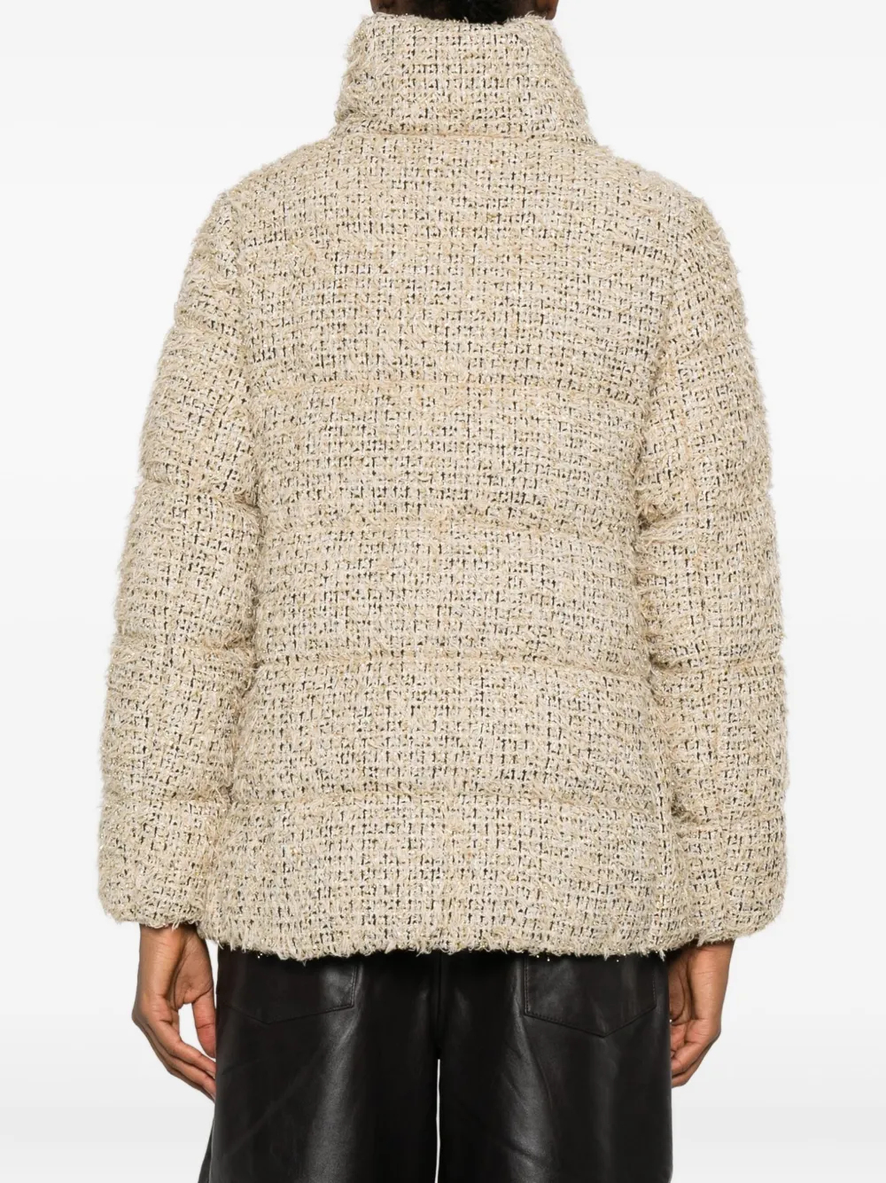 Бежевый твид стеганый высокий воротник застежка на кнопки длинные рукава