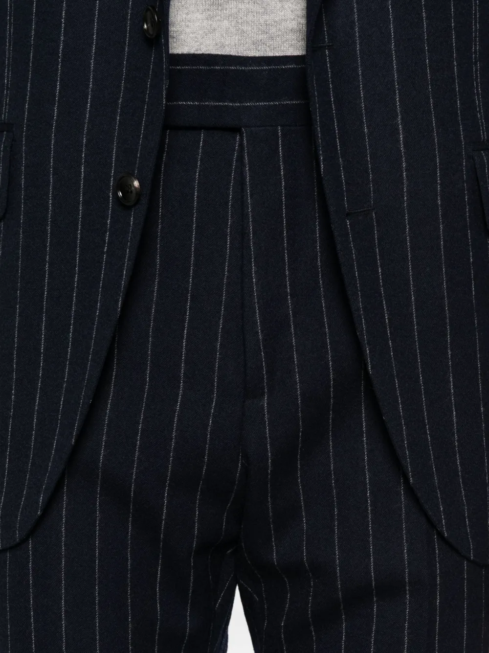 Темно-синий узор в тонкую полоску скрытая застежка спереди боковые карманы шлевки для ремня шерсть
