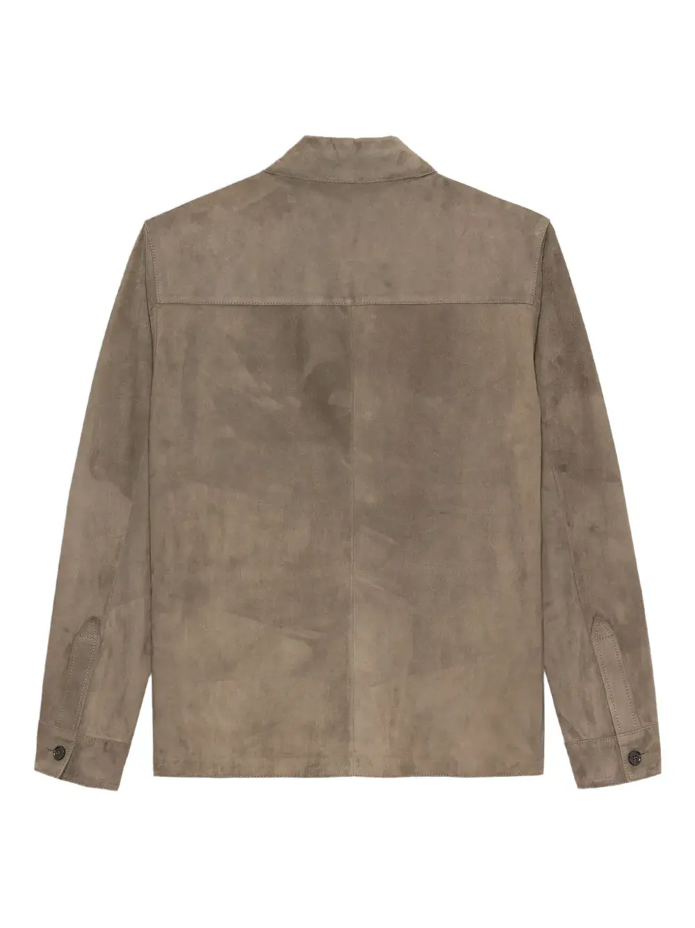 Замша цвета земли, застежка на пуговицы, накладные карманы, длинные рукава, отложной воротник