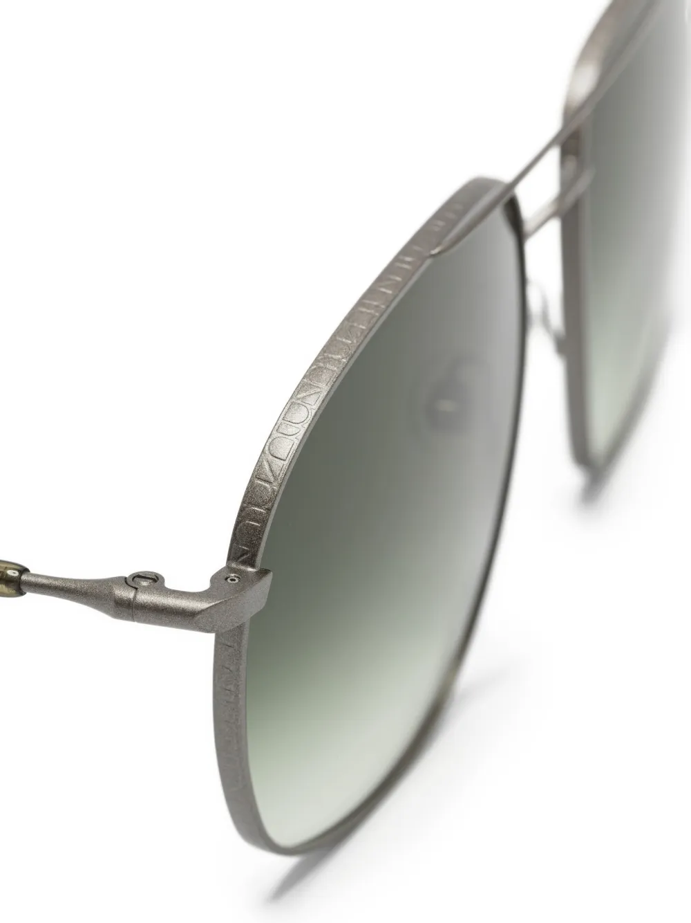 Серый металлическая оправа градиентные линзы дужки с гравировкой ненавязчивый брендинг прямоугольная оправа. Эти очки поставляются с защитным футляром.