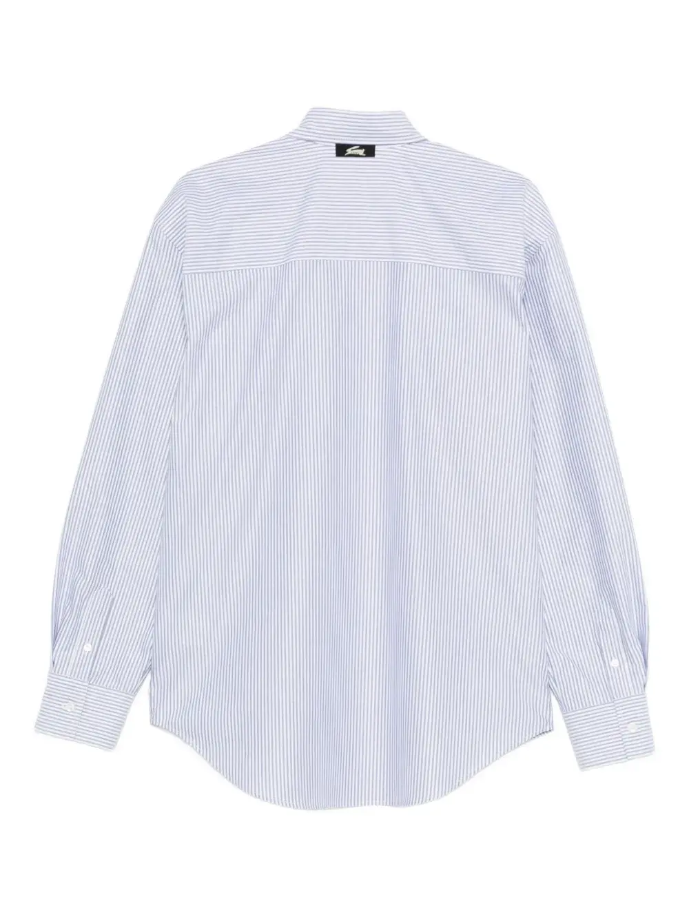 Светло-голубой в полоску абстрактный принт длинные рукава застежка на пуговицы закругленный подол