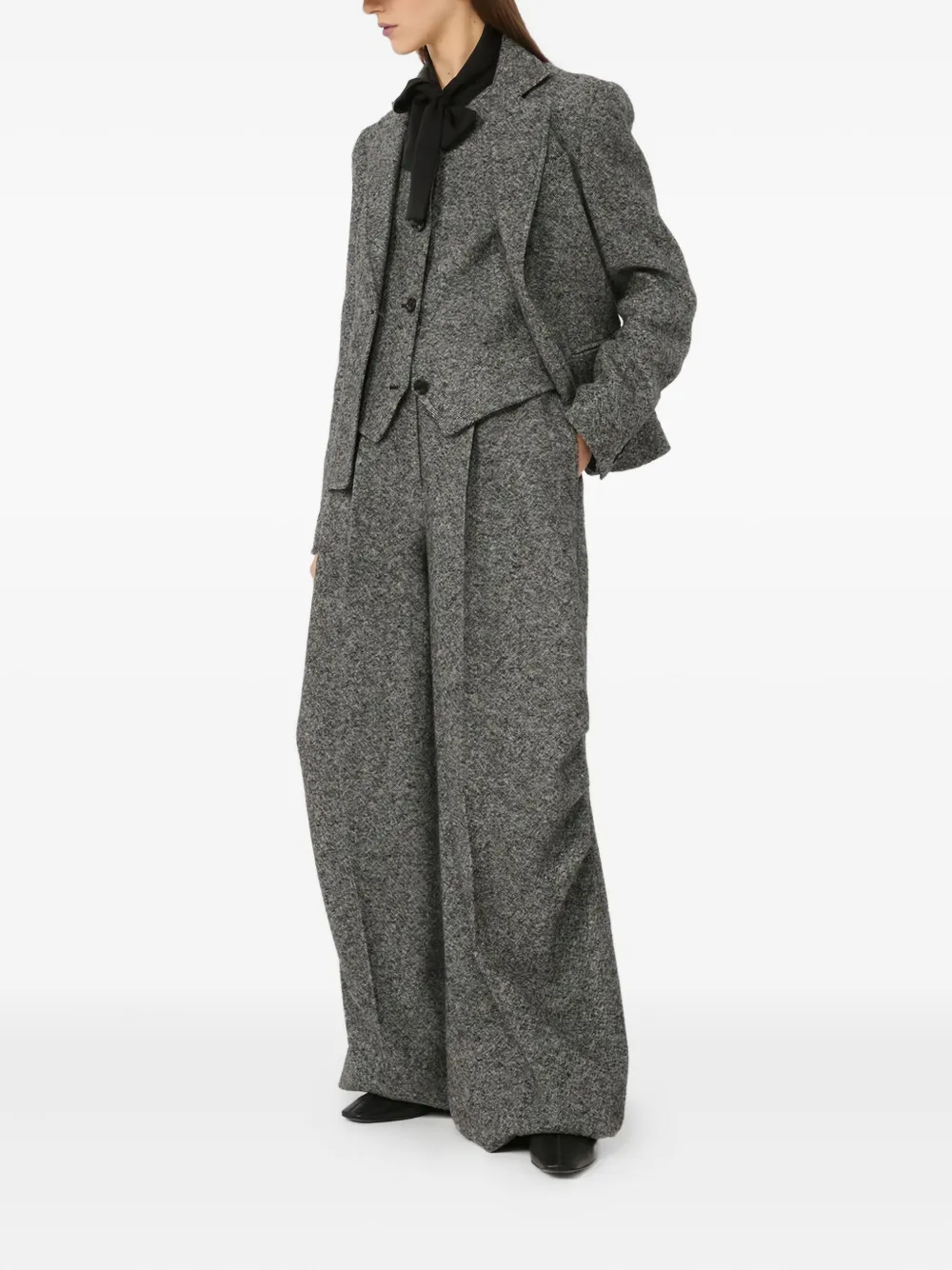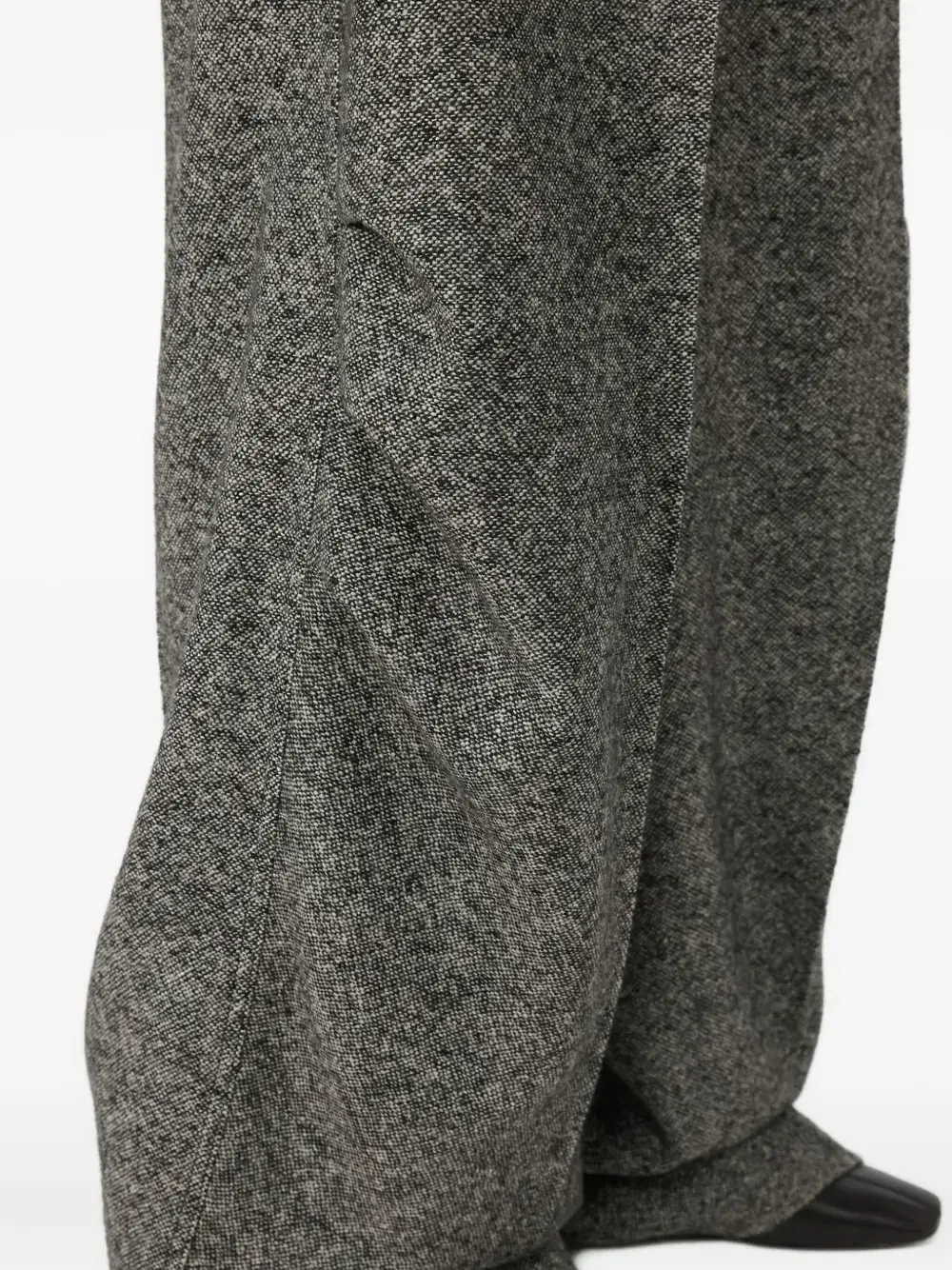 Белый смесь шерсти и шелка высокая талия складки спереди по центру карманы