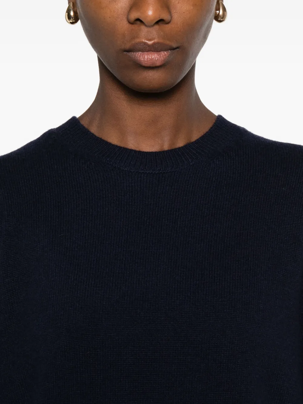 Темно-синий круглый вырез длинные рукава рубчатые манжеты и нижний край