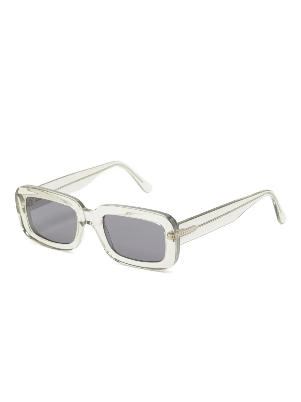 Светло-бежевый прямоугольная оправа серые линзы ненавязчивый брендинг прямые заушники. Эти очки поставляются с защитным футляром.