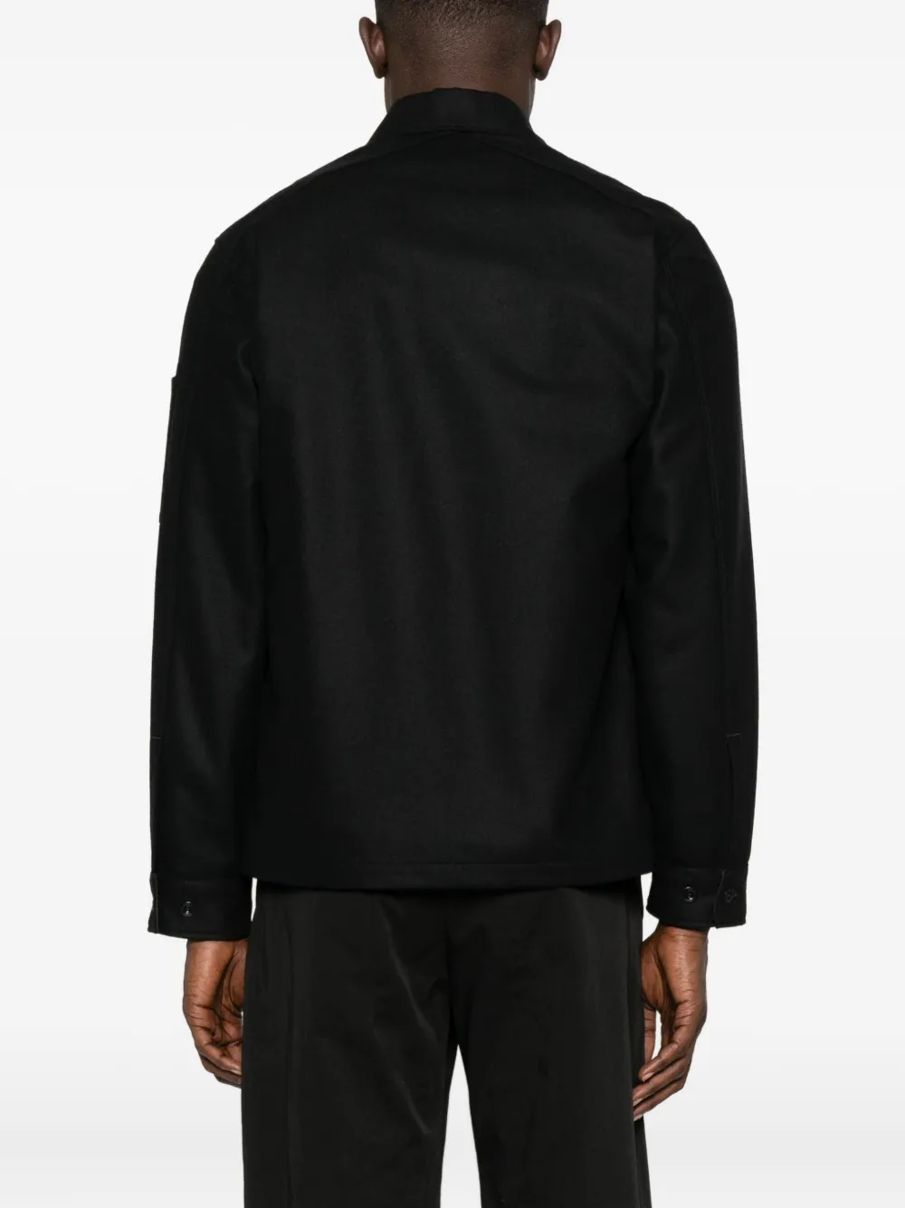 Черный шерстяной смесовый материал, застежка на пуговицы, накладные карманы с клапанами, длинные рукава. C.P. Company рекомендует снимать все съемные аксессуары перед стиркой.