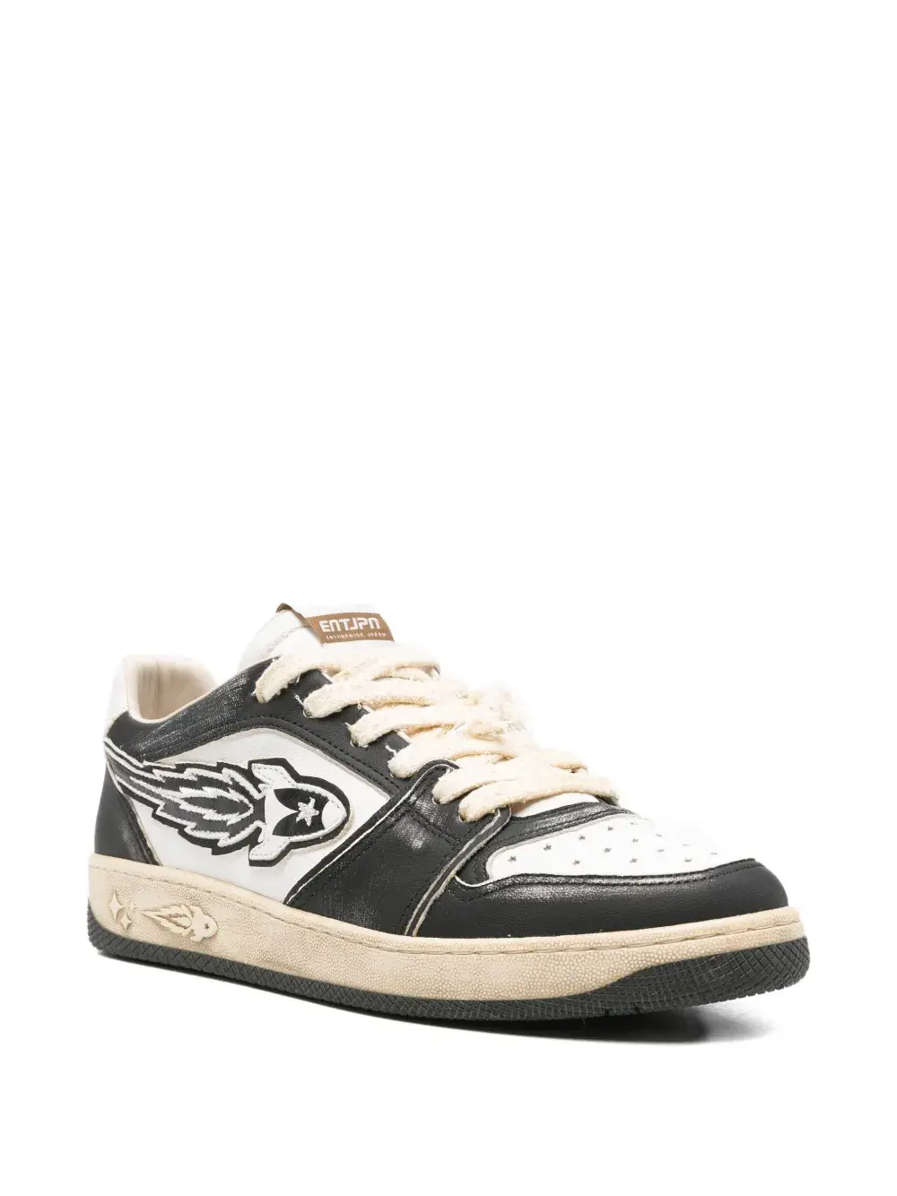 Черный кожаный верх принт с ракетой резиновая подошва шнуровка