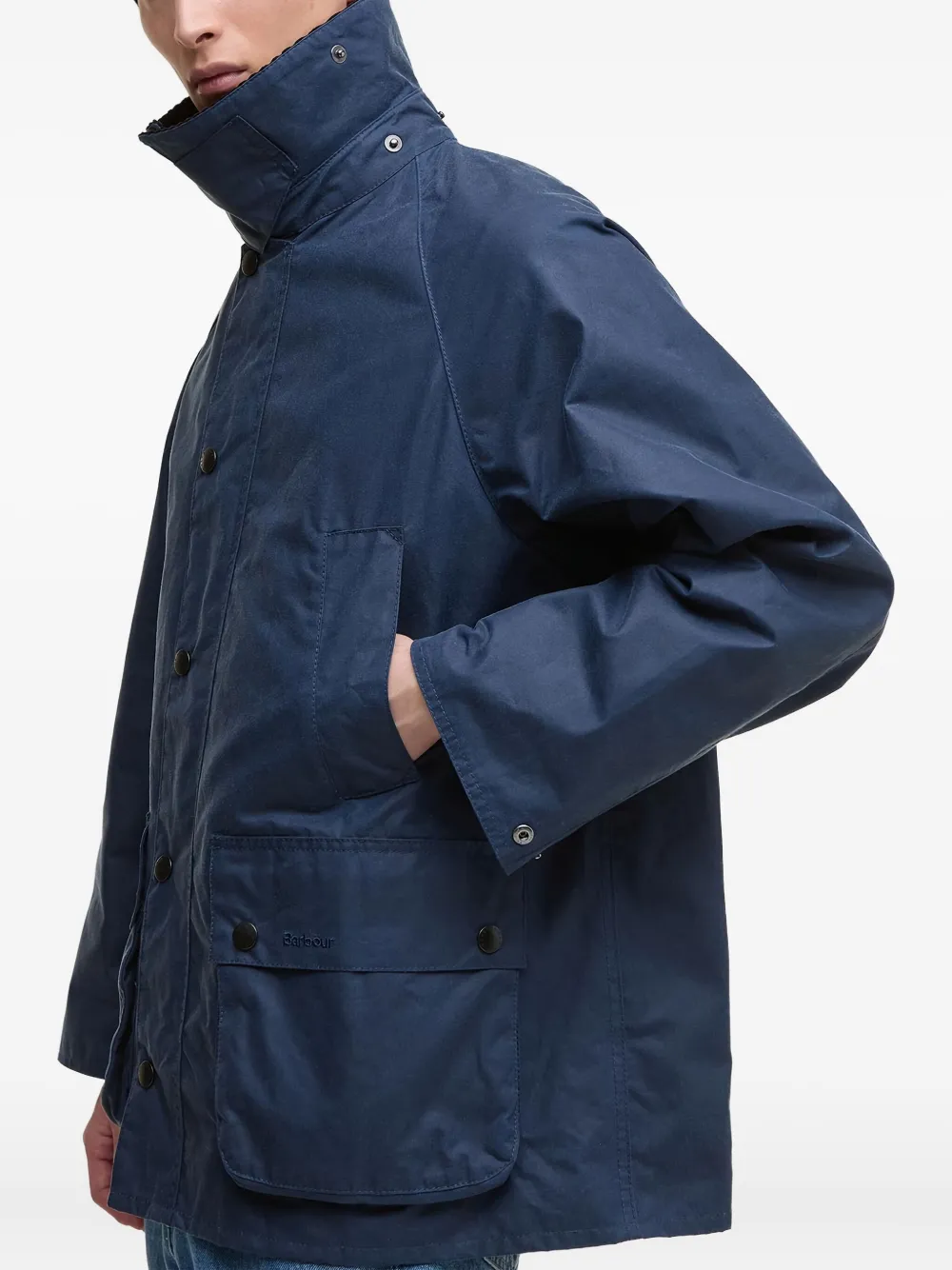 Кобальтово-синий воротник из вельвета застежка на пуговицы внешние накладные карманы с клапанами боковые прорезные карманы рукава реглан