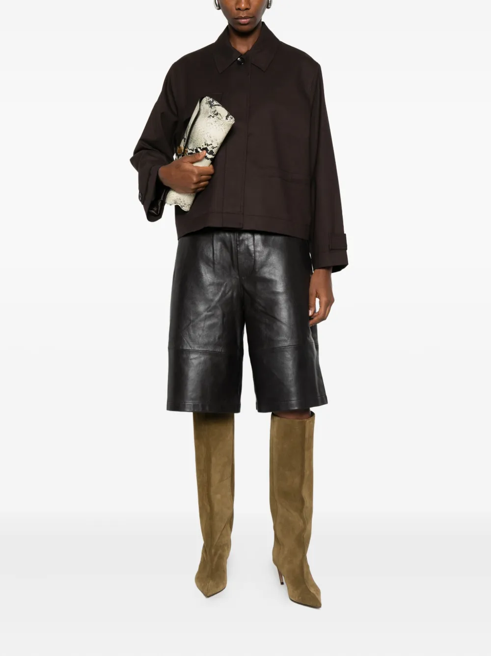 Коричневый застежка на пуговицы спереди нагрудные накладные карманы с клапанами укороченный длинные рукава