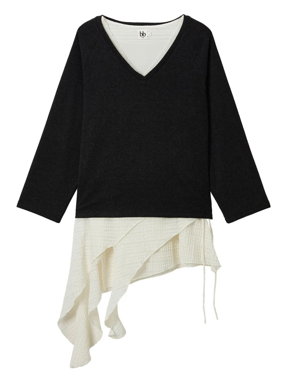 Черный v-образный вырез асимметричный подол детали со шнурком