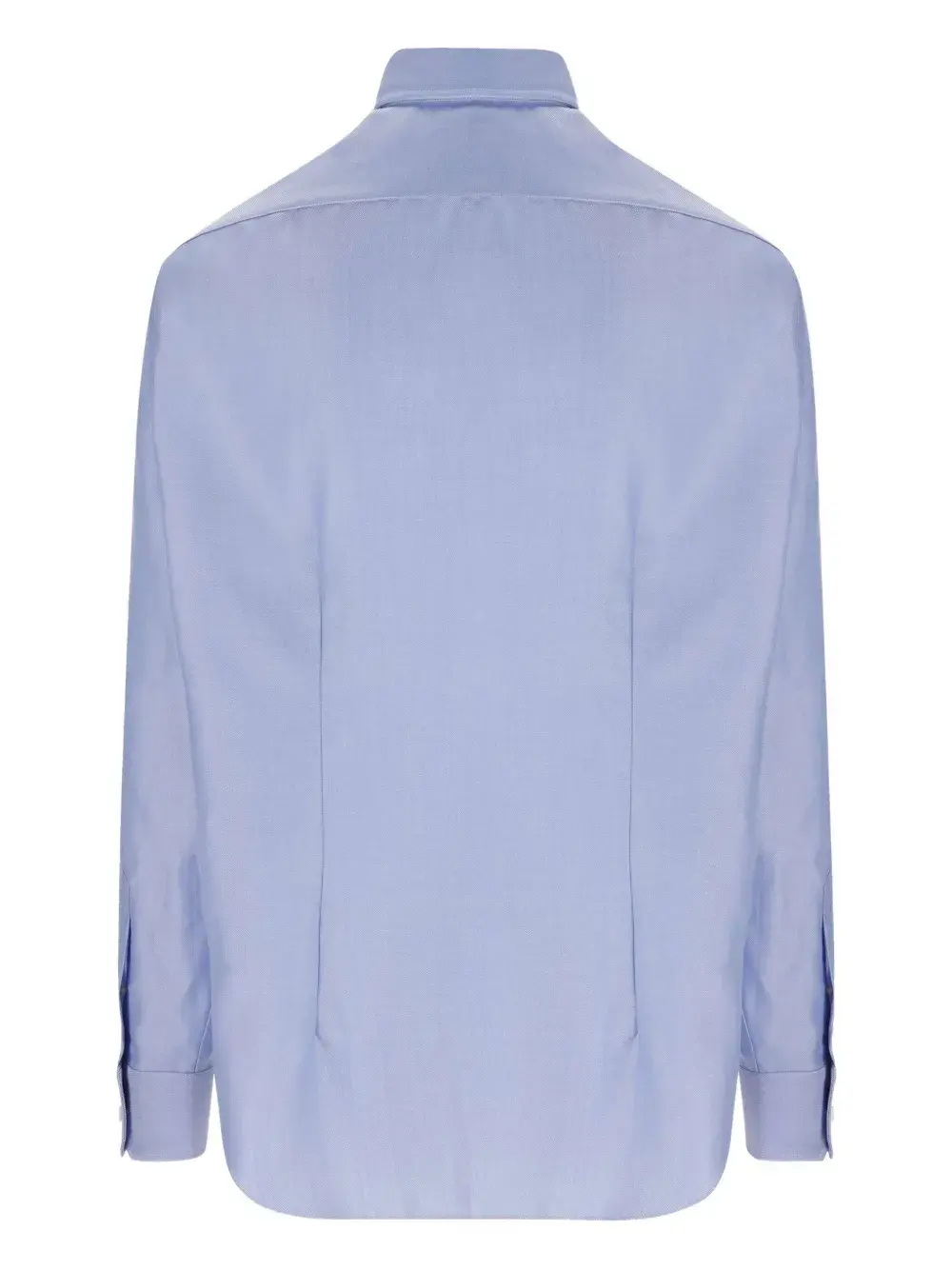 Светло-голубой длинные рукава отложной воротник застежка на пуговицы прямой низ