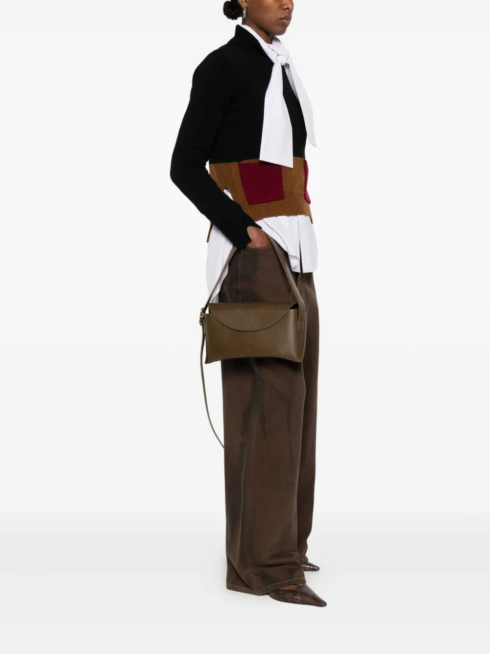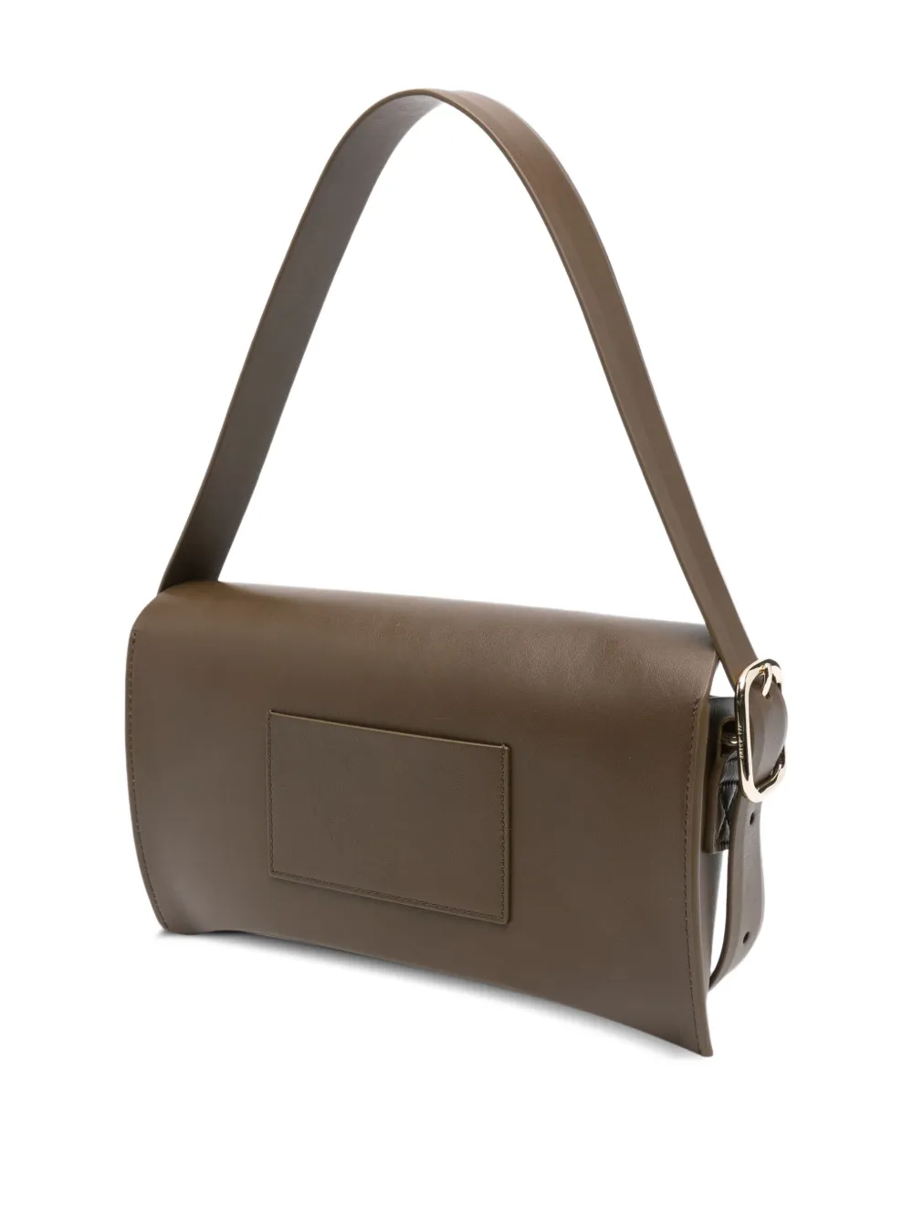 Коричневый изогнутый клапан-застежка декор с пряжкой одна плечeвая ручка кожа внутренний карман