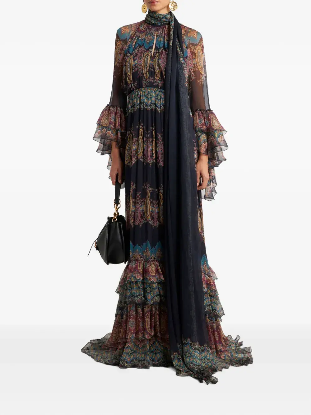 Платье макси с оборками и принтом пейсли ETRO, синий