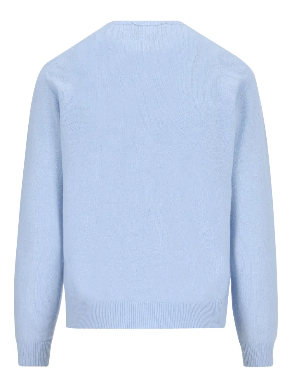 Светло-голубой кашемир V-образный вырез длинные рукава рубчатый низ рубчатые манжеты