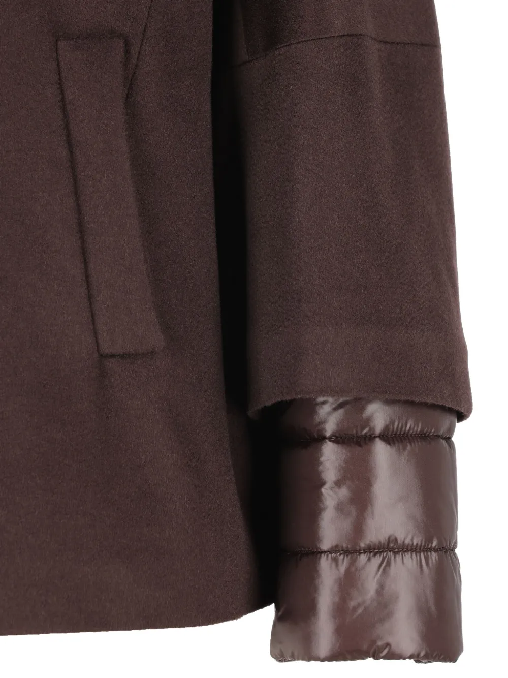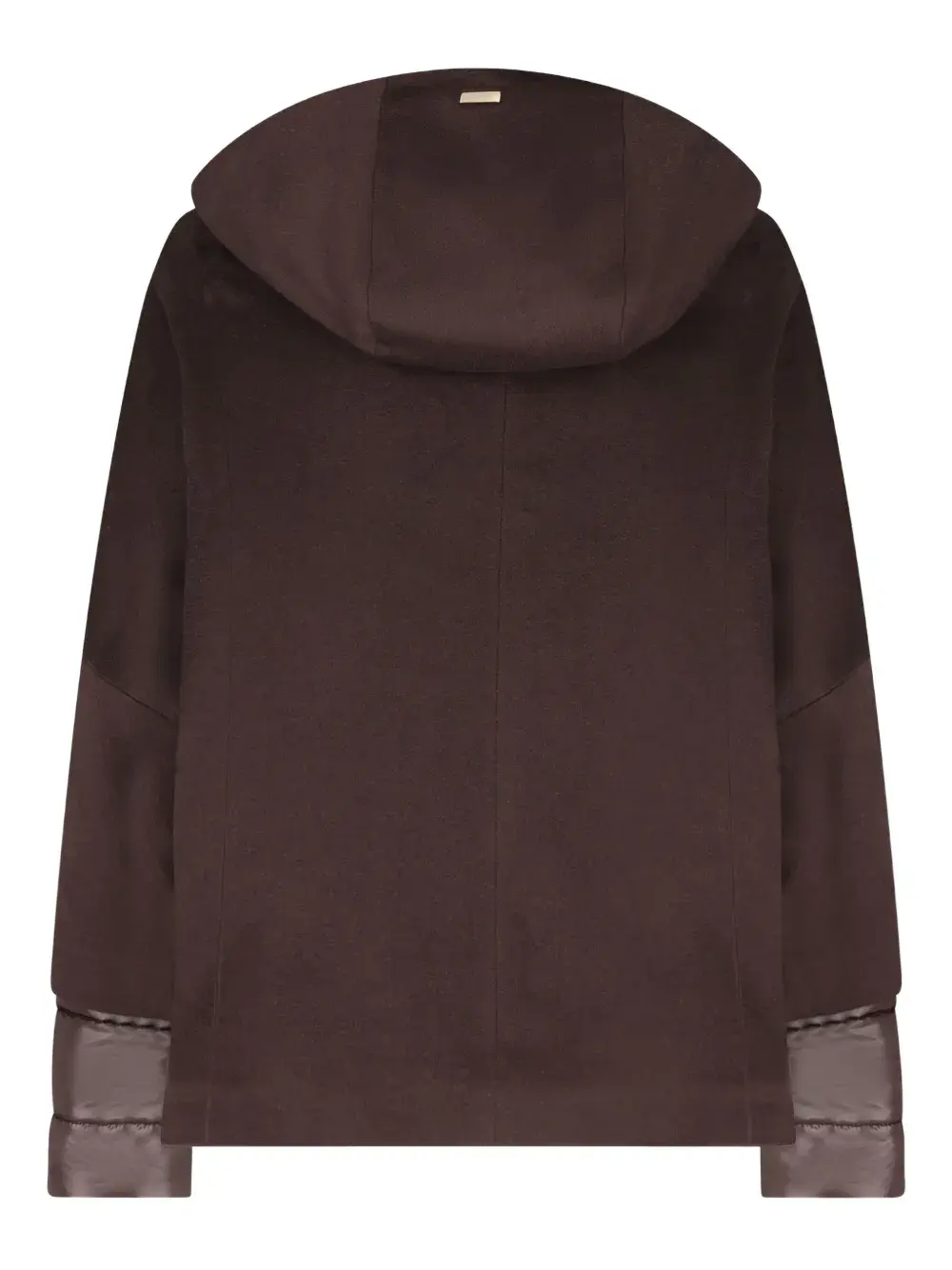 Коричневыйкашемирдлинные рукавастеганые вставкискрытая застежка спередидизайн с капюшономбоковые карманы
