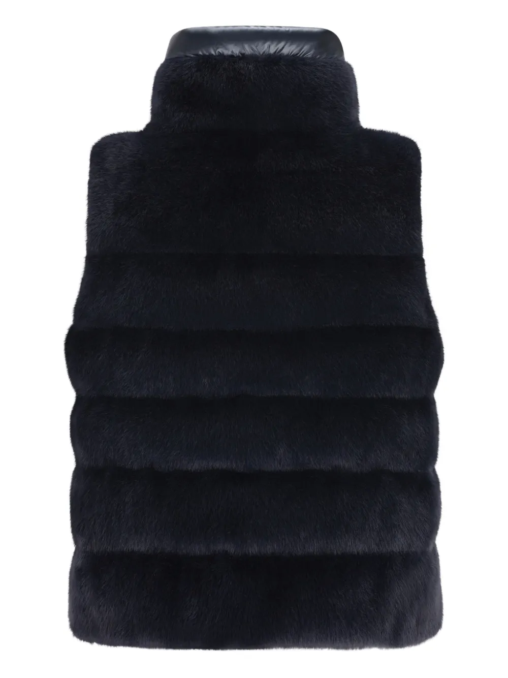 Темно-синий горизонтальная стежка искусственный мех высокий воротник застежка-молния пуховый наполнитель
