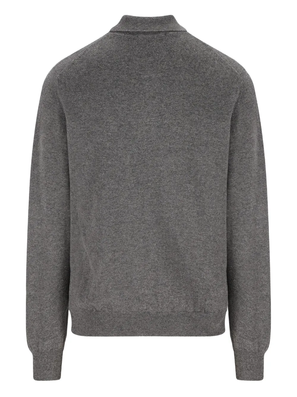 Серый пуловер с воротником-поло из кашемира, застежка на пуговицы, длинные рукава, ребристый нижний край