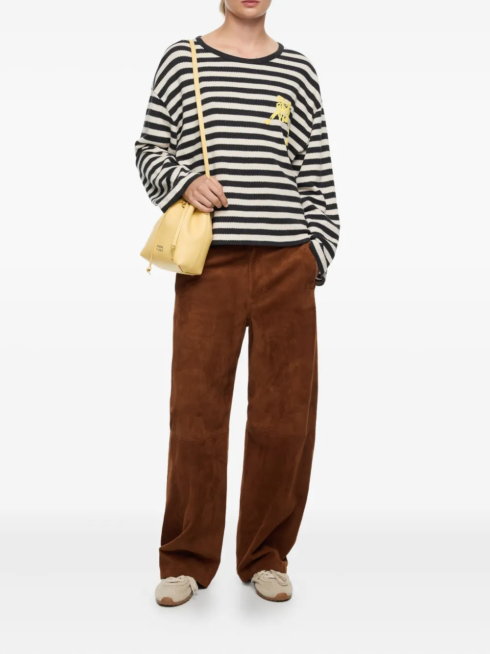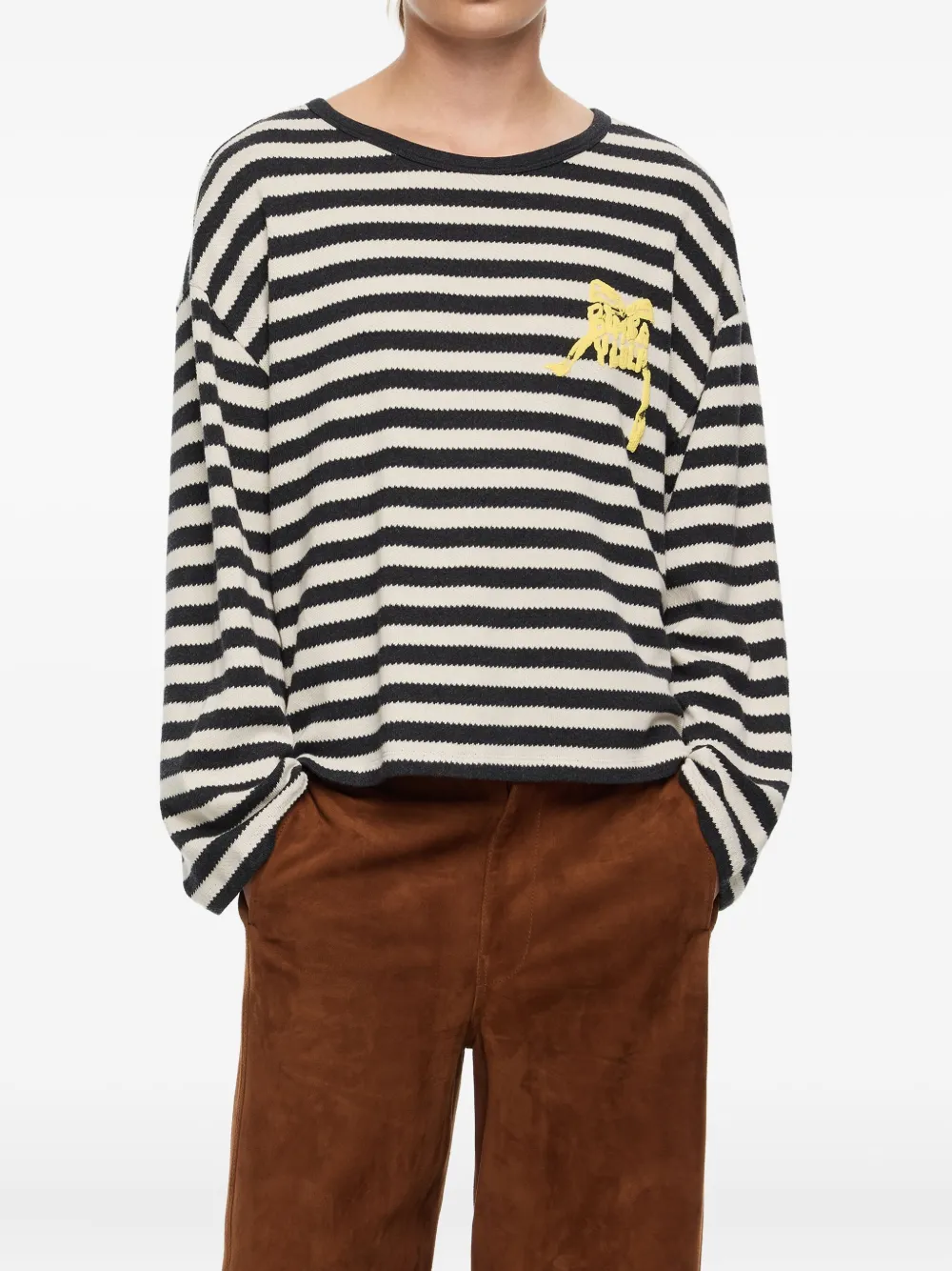 Черно-белый принт в горизонтальную полоску, длинные рукава, круглый вырез