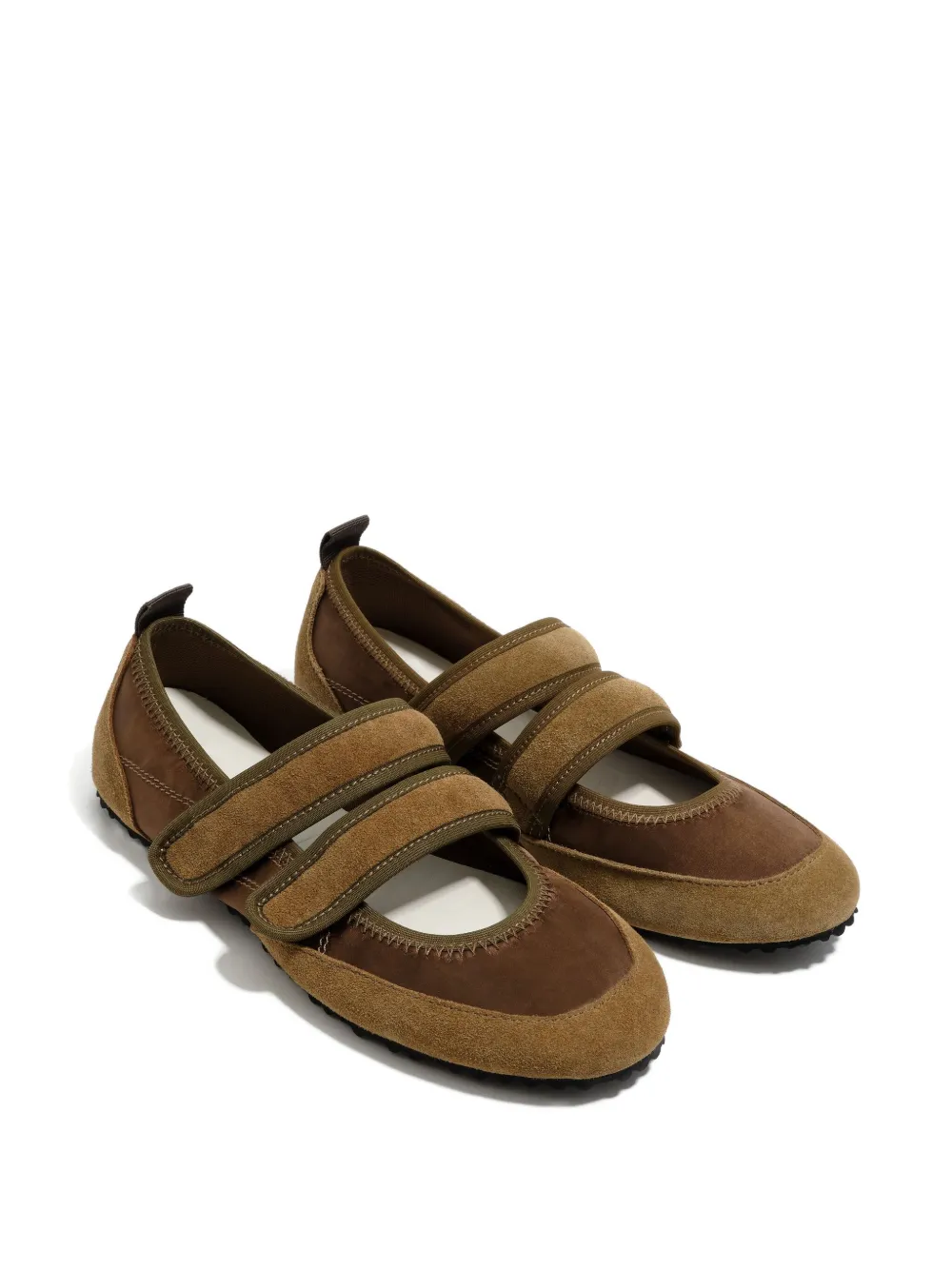 Хаки, замшевые вставки, застежка на две липучки, круглый нос, плоская подошва, прострочка
