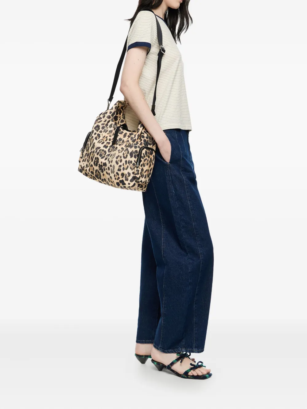 Коричневый леопардовый принт верхние ручки съемный плечевой ремень карманы на молнии застежка на кулиску