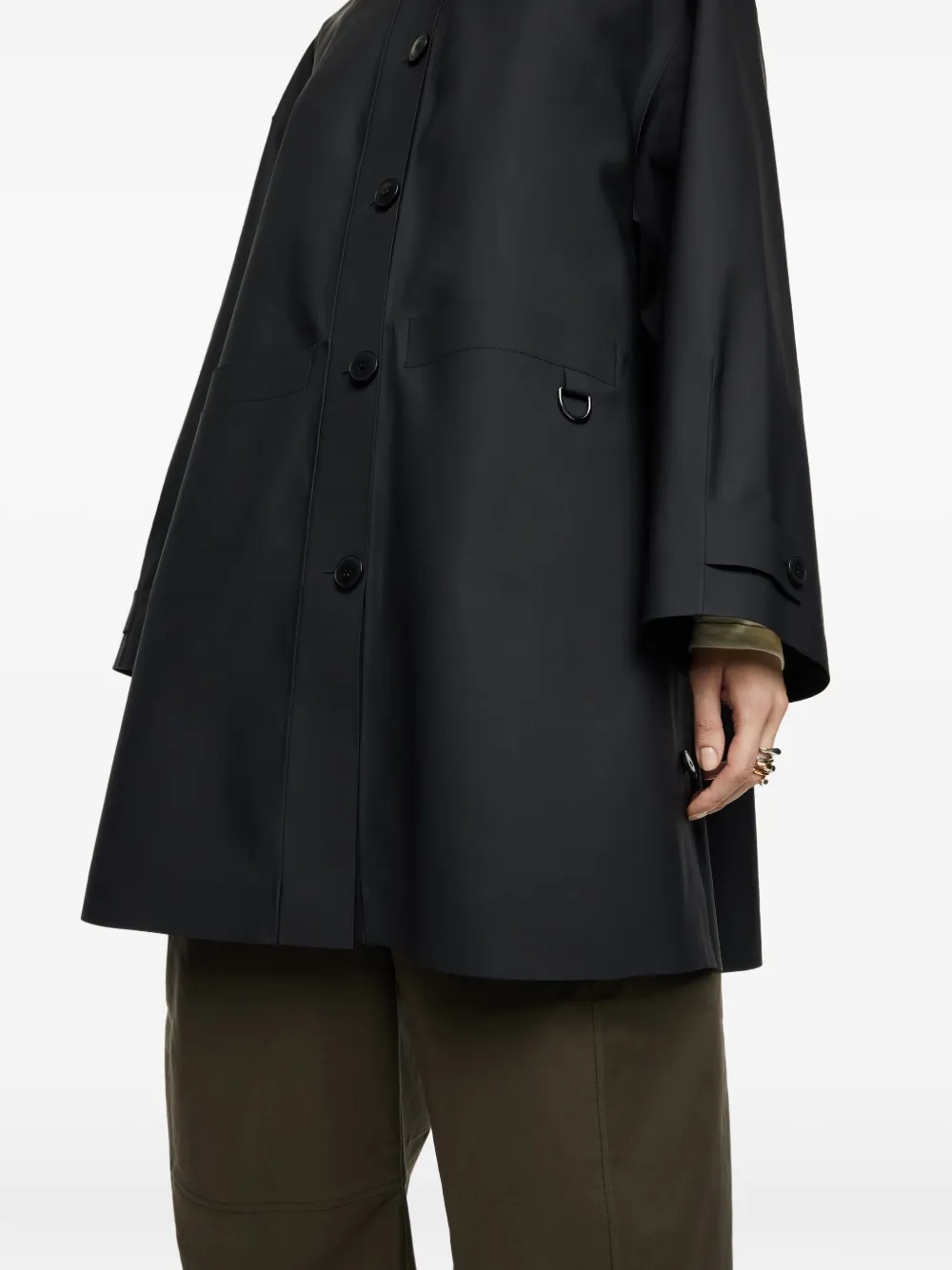 Темно-синий капюшон застежка на пуговицы боковые карманы длинные рукава