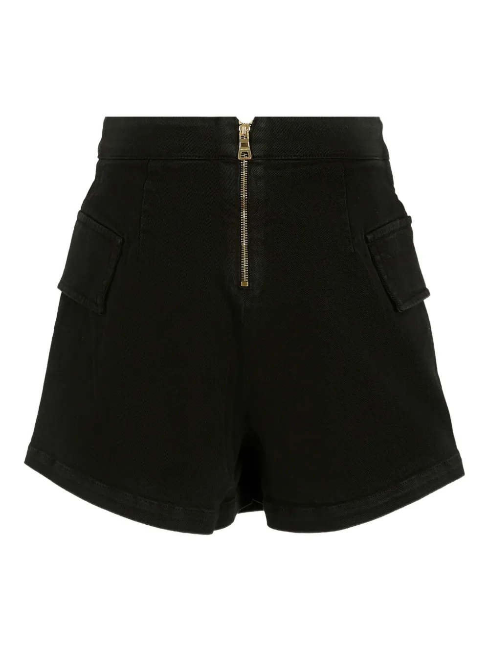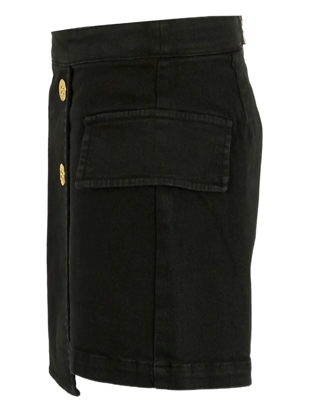 Черные, золотые пуговицы, накладные карманы, застежка-молния, асимметричный подол, хлопок
