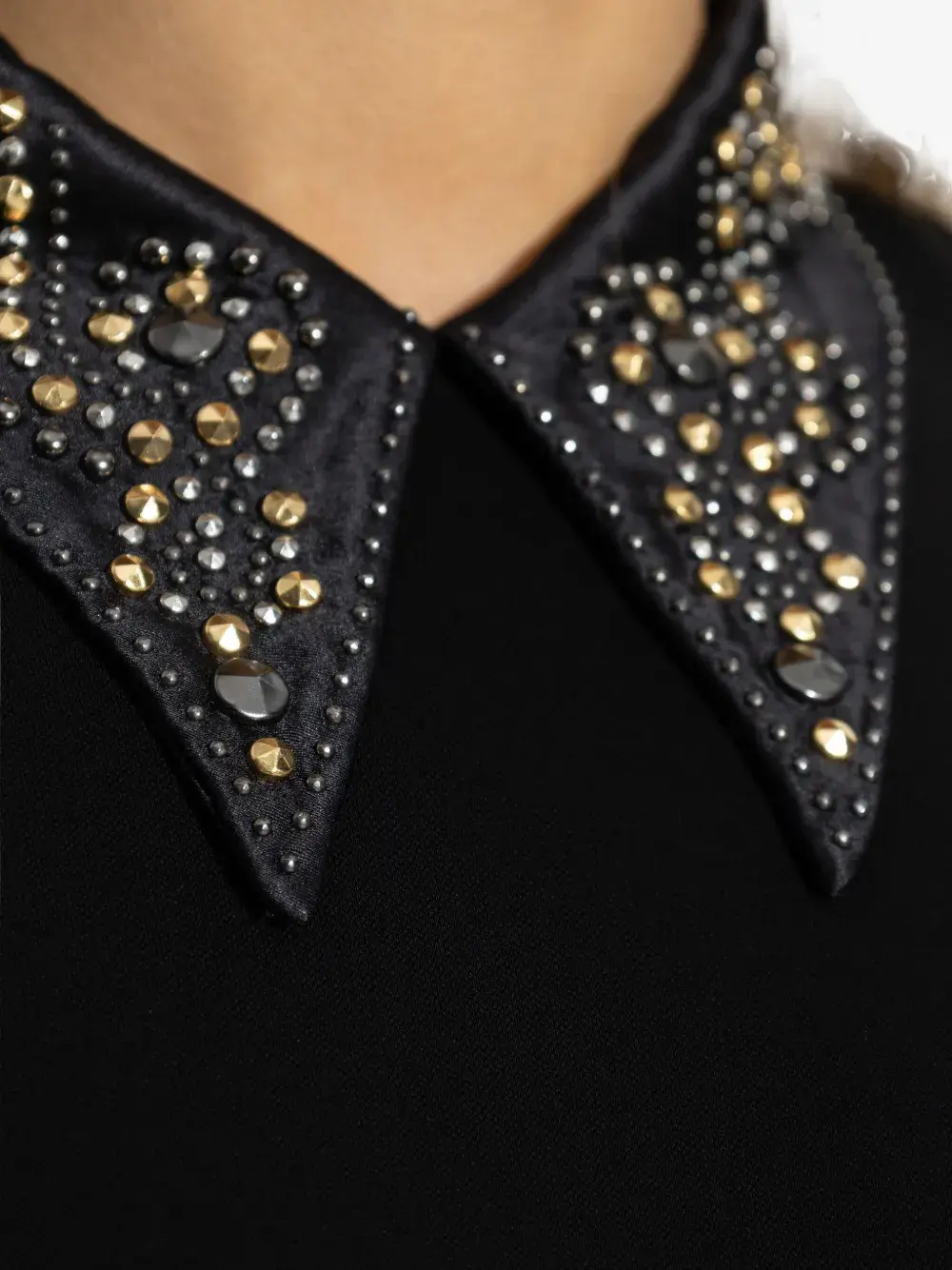 Черная рубашка с длинными рукавами и украшенным стразами воротником