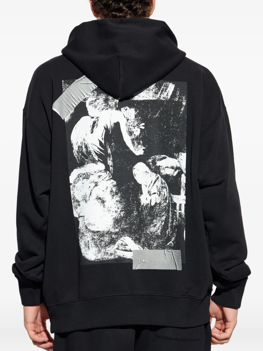 Хлопковое худи с логотипом в виде ленты OFF-WHITE, черный 45 322₽