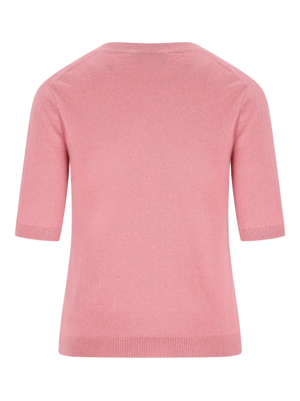 Светло-розовый кашемировая ткань круглый вырез короткие рукава прямой подол