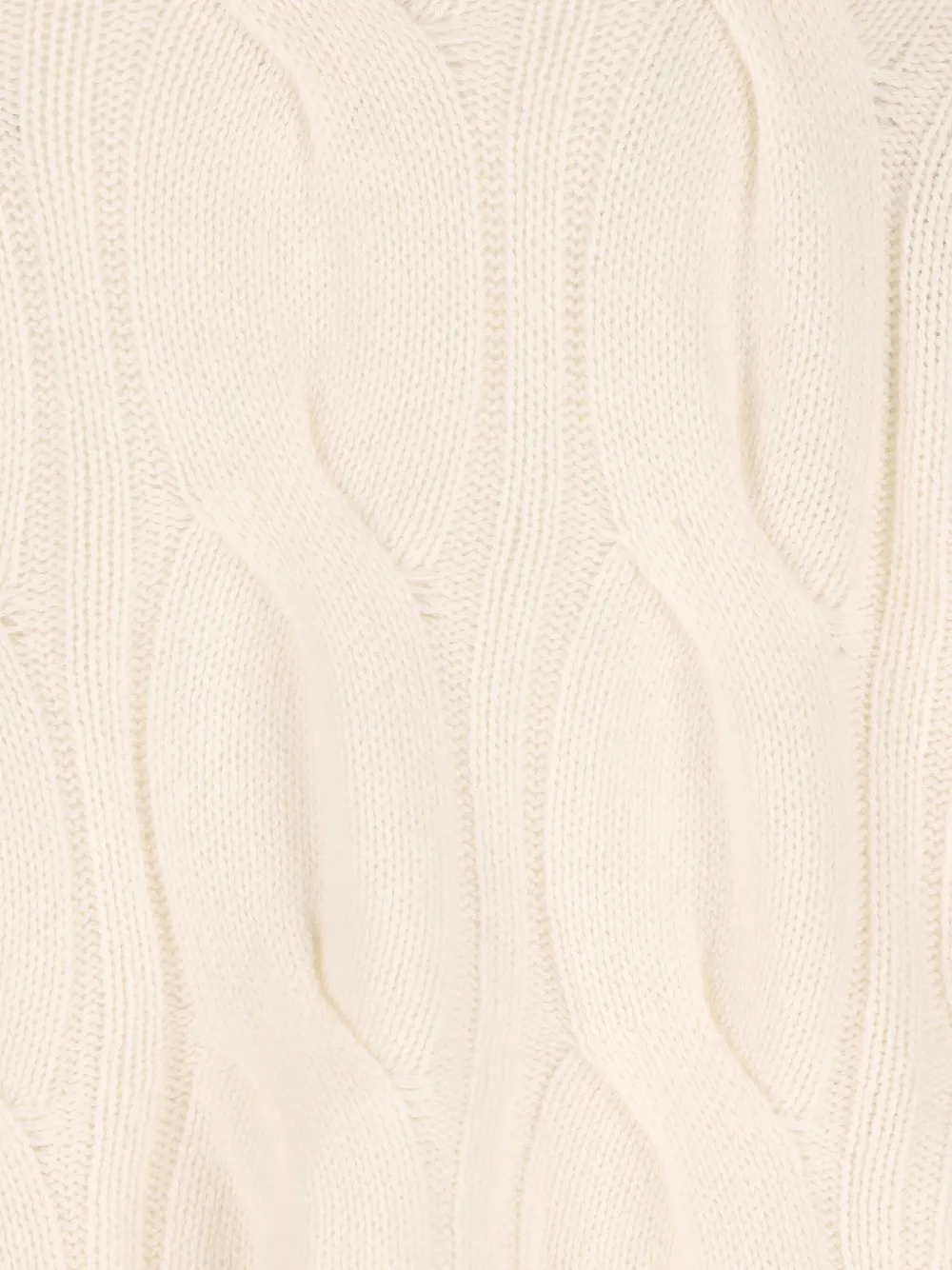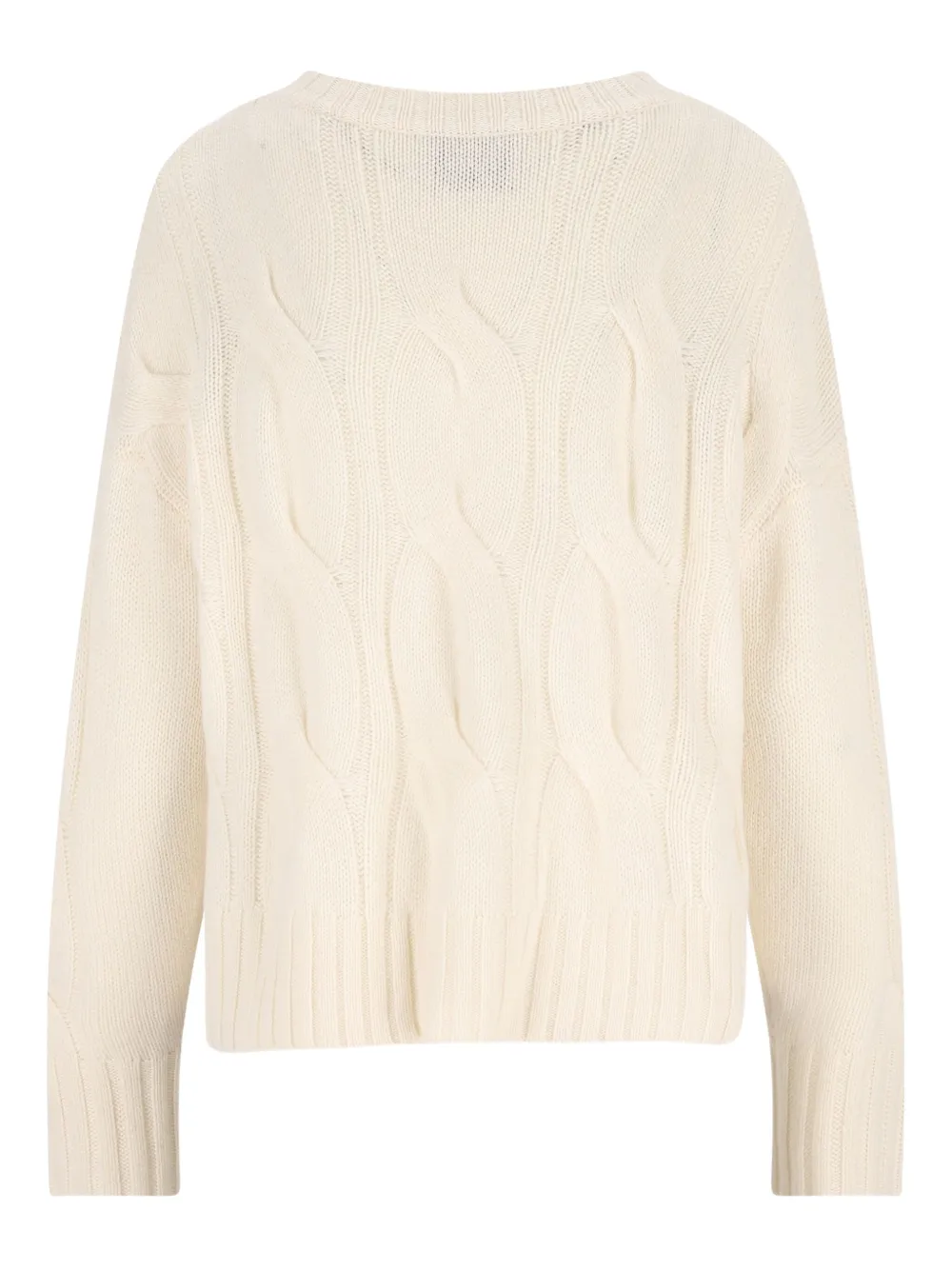 Молочно-белый вязаный узором "косы" V-образный вырез длинные рукава ребристый край