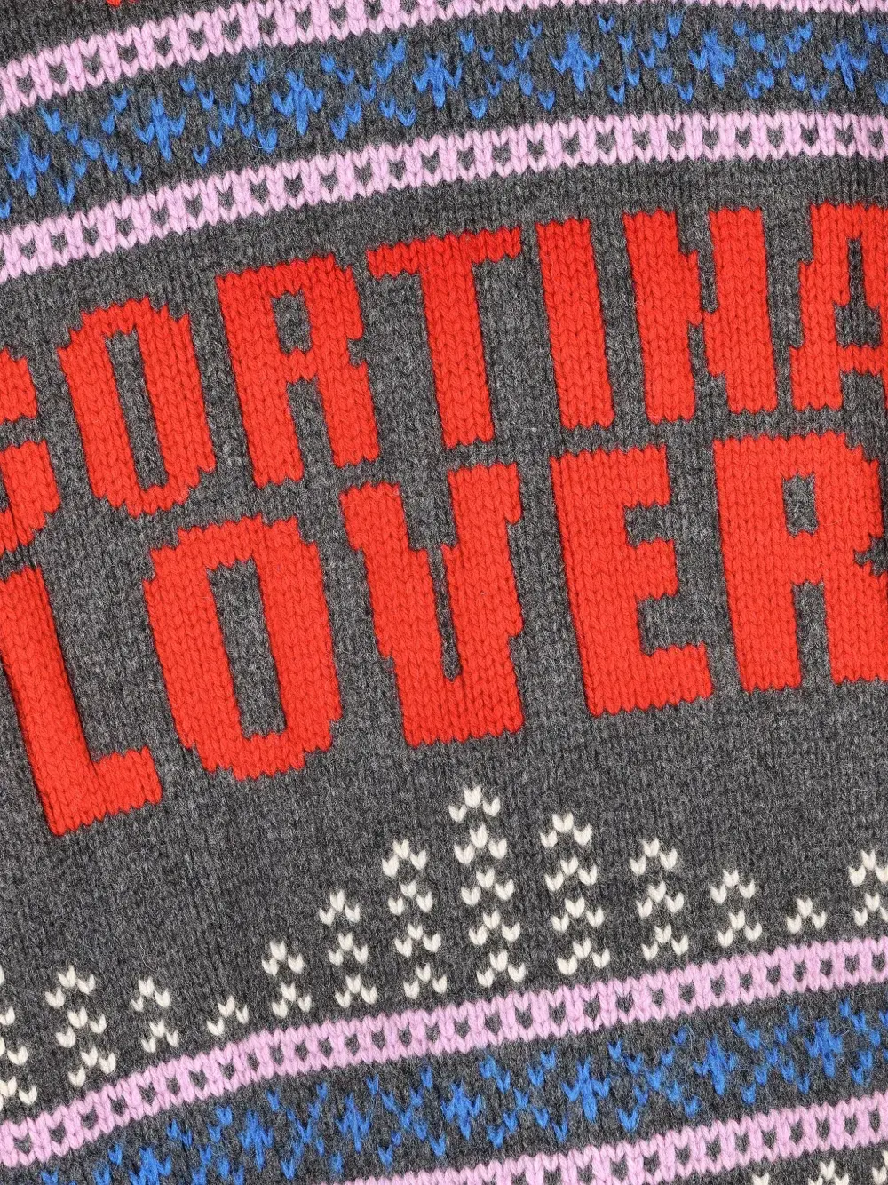 Серый жаккардовый узор Fair Isle, надпись 'Cortina Lover' спереди, застежка-молния спереди, высокий воротник, нашивка с логотипом на рукаве