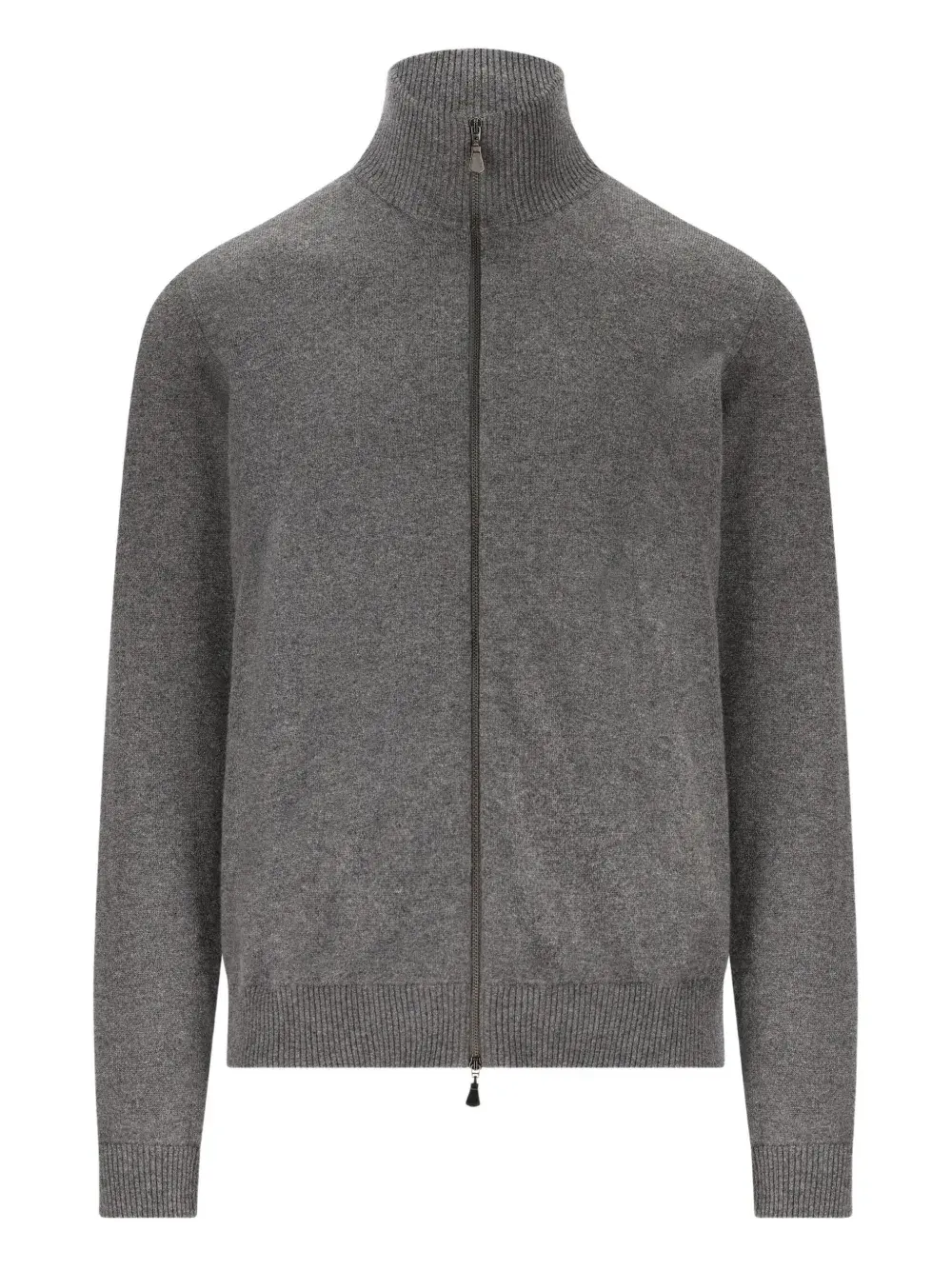 Серый кашемир застежка-молния рубчатый низ рубчатые манжеты высокий воротник длинные рукава