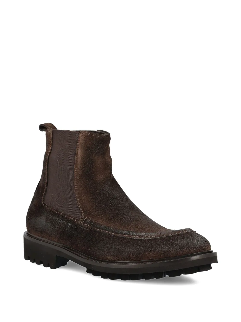 Коричневый верх из замши, эластичные боковые вставки, мысок-мокасин, резиновая подошва, простроченные детали