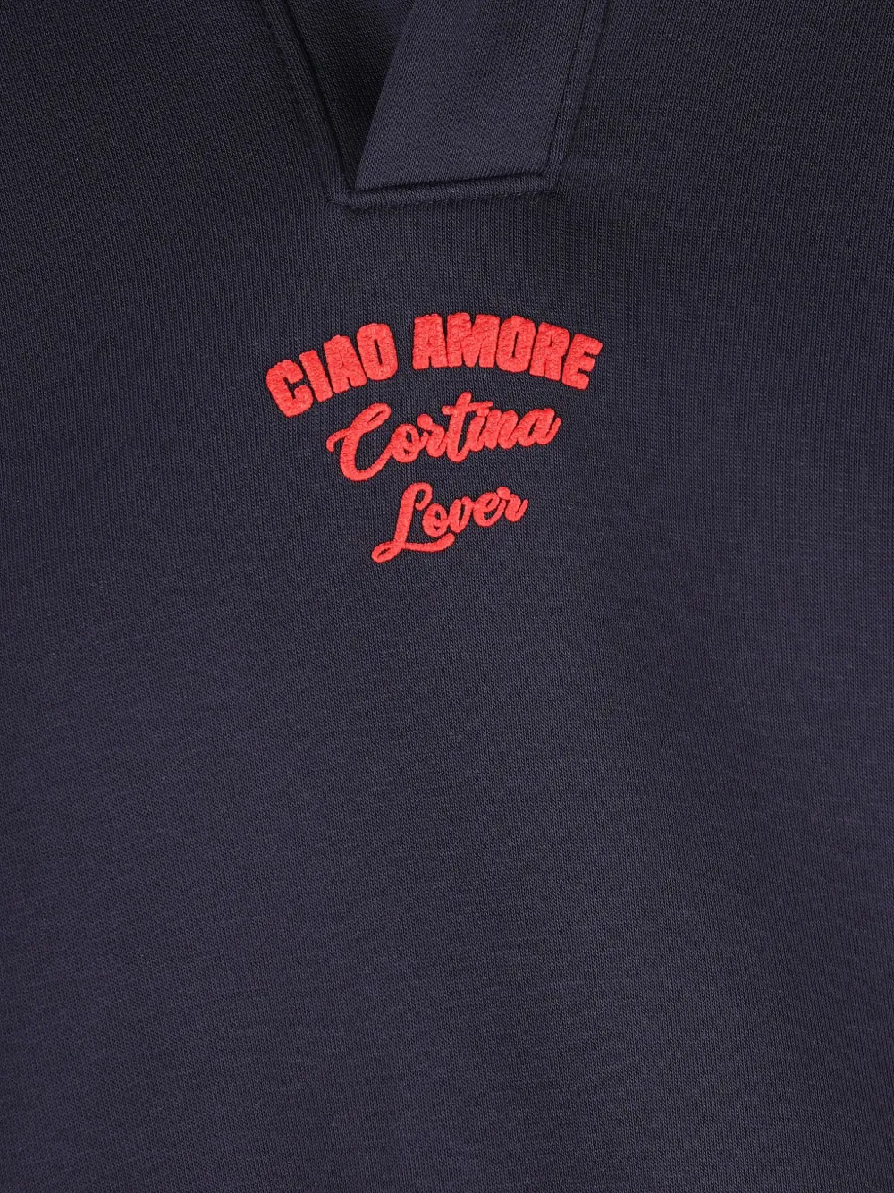 Темно-синий водолазка с рукавами-реглан, вышитой надписью, изогнутым подолом, хлопок