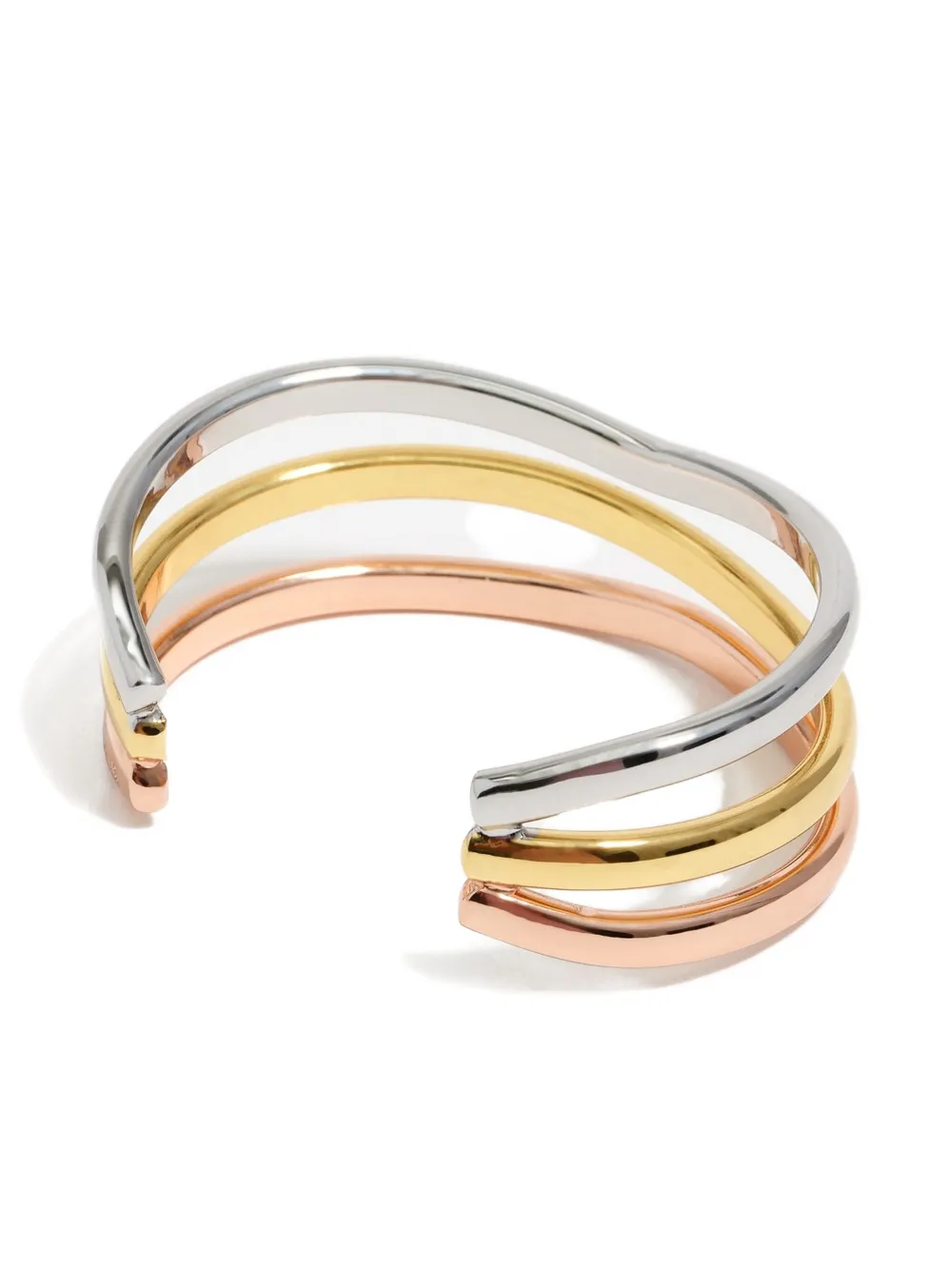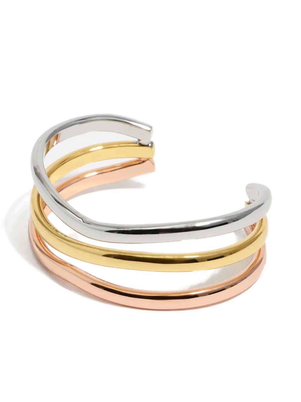 Многоцветный латунная конструкция волнообразный дизайн три полосы открытый браслет полированная отделка