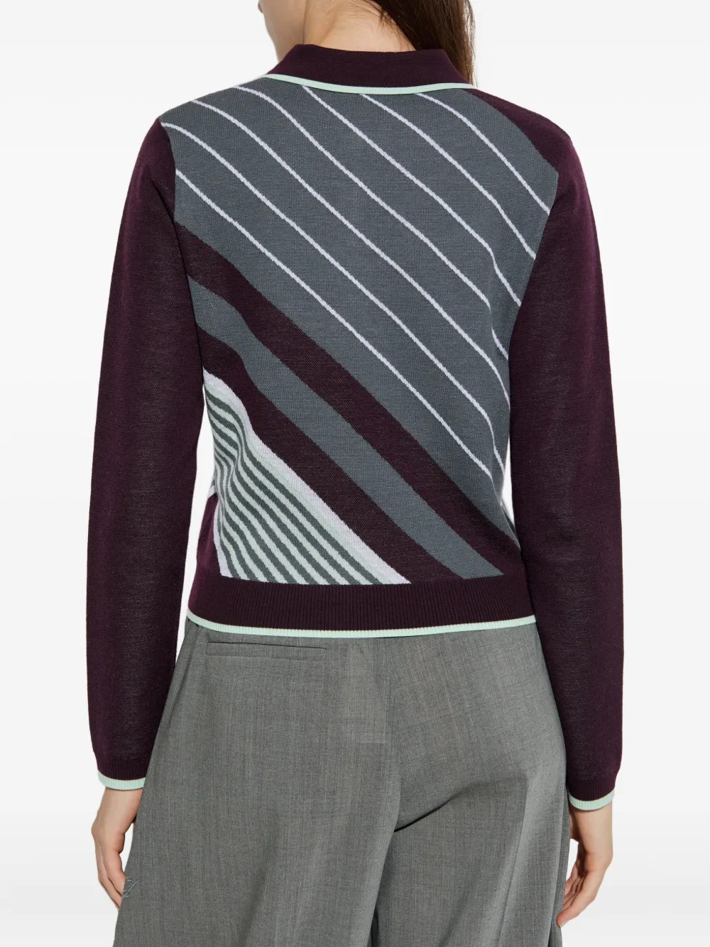 Баклажановый цвет диагональные полосы застежка-молния до середины длинные рукава трикотажная ткань