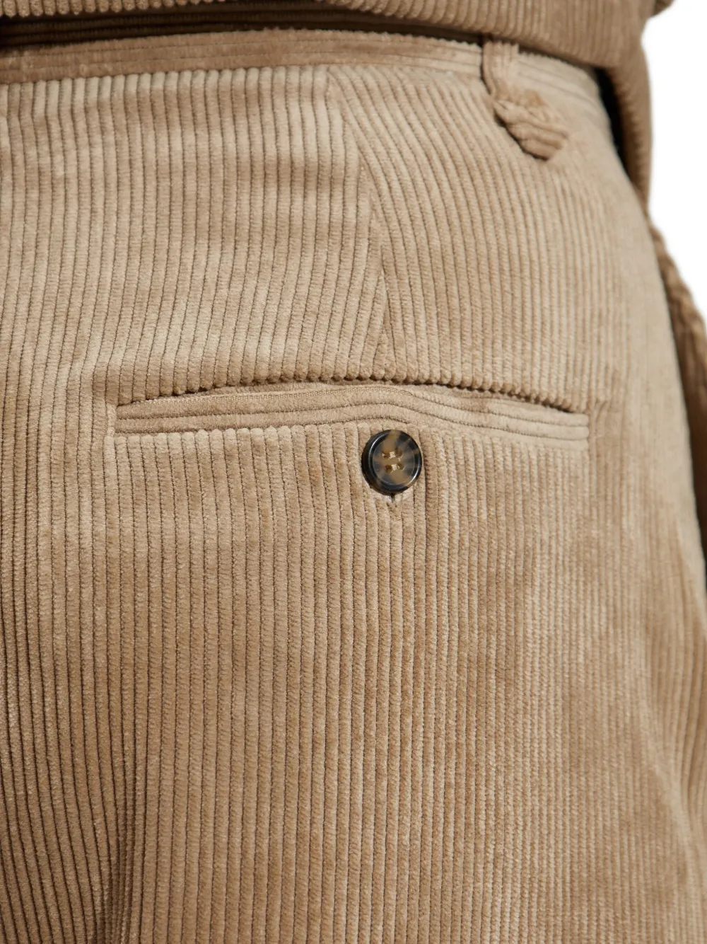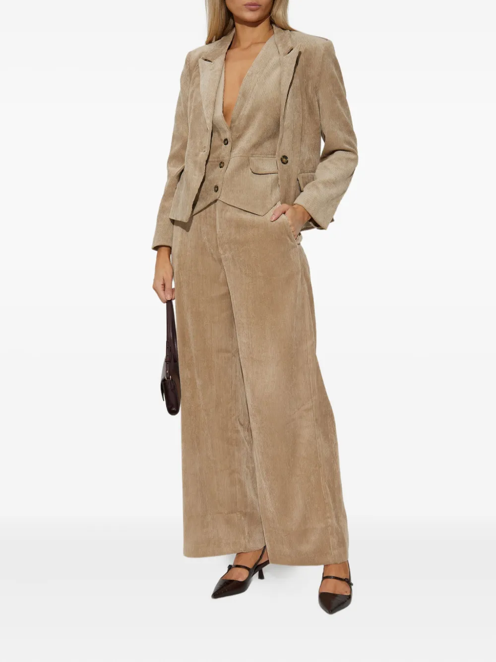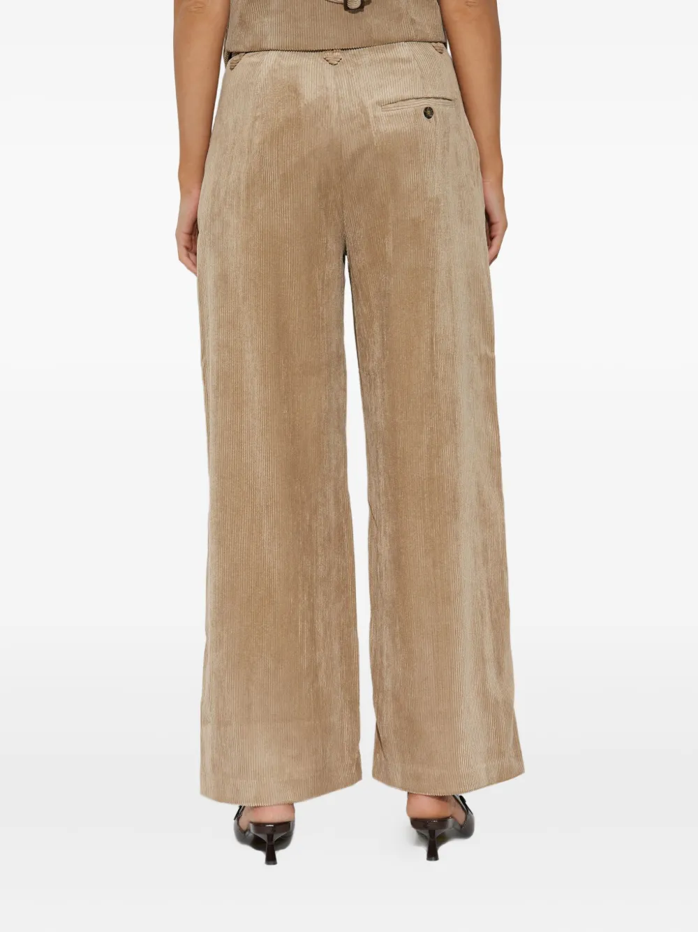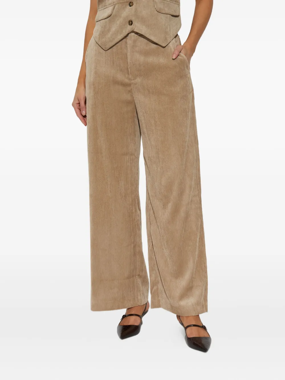 Светло-коричневый широкий крой штанин вельветовая фактура скрытая застежка спереди задний прорезной карман завышенная талия