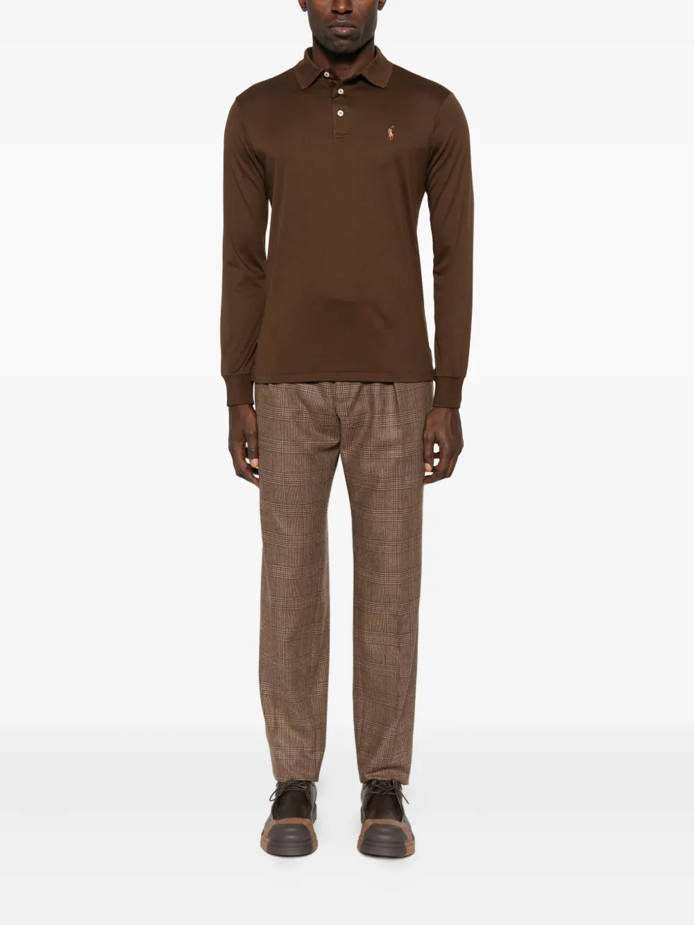 Коричневые плиссированные прямые брюки в клетку с застежкой на пуговицы