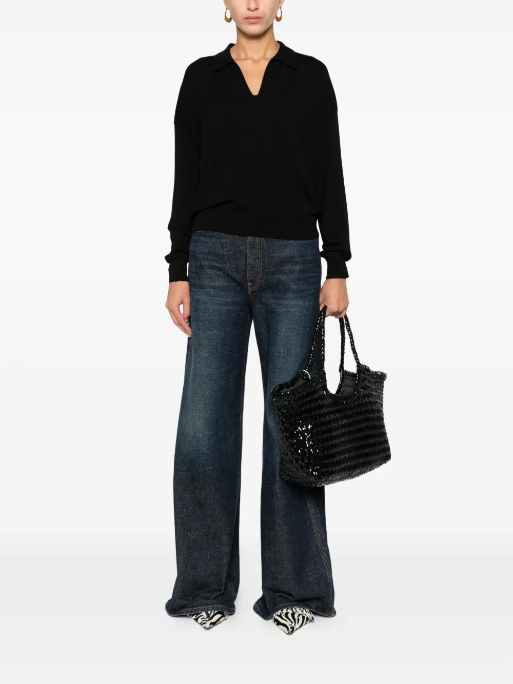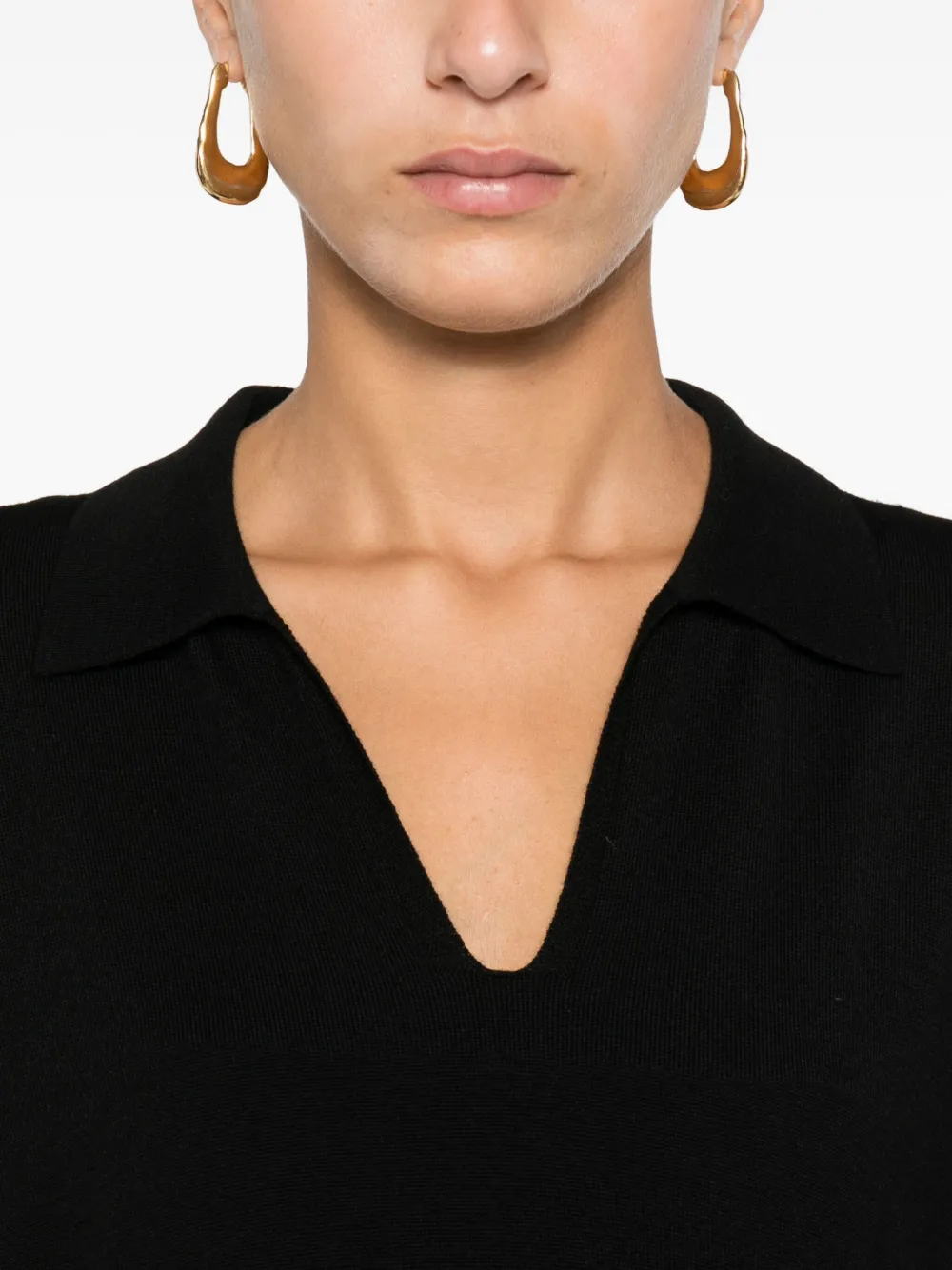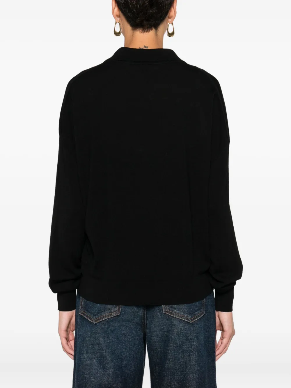 Черный воротник-поло длинные рукава прямой низ рукава с ребристой отделкой