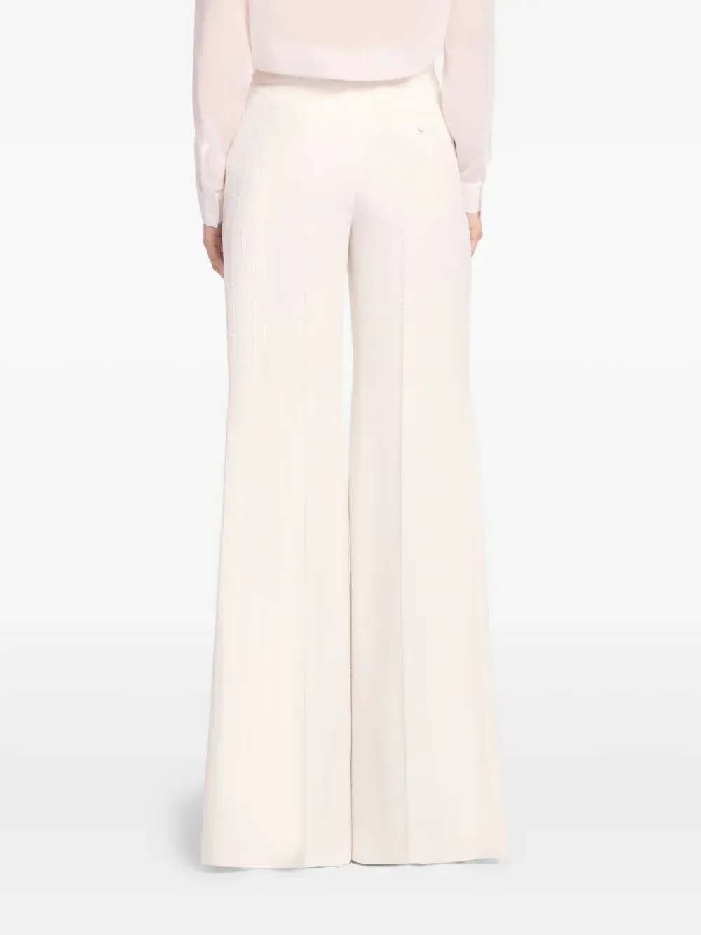 Белые брюки в тонкую полоску, расклешенные, с боковыми карманами