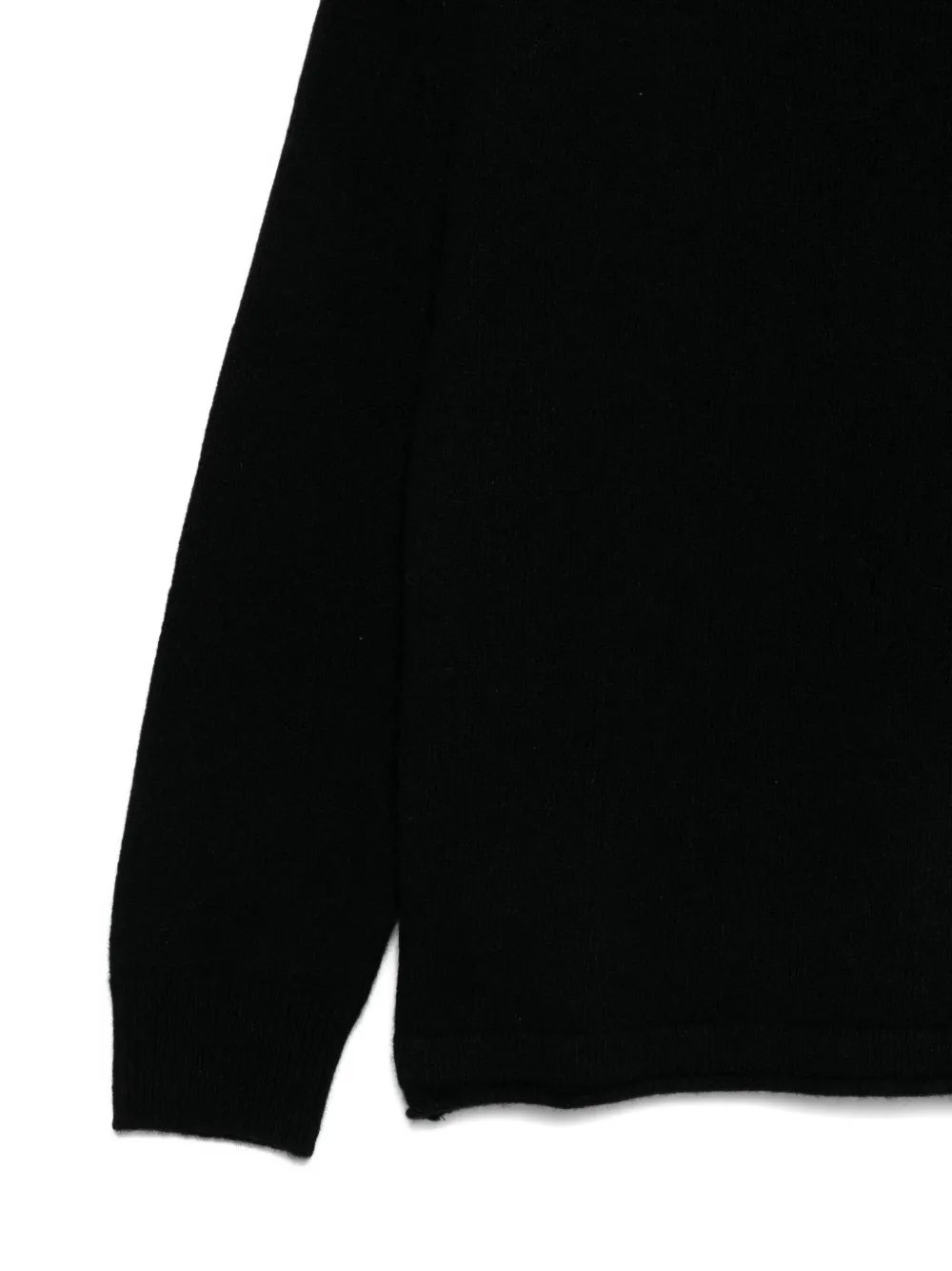Черный джемпер с круглым вырезом, длинными рукавами, ребристыми манжетами, прямым низом и однотонной вязкой