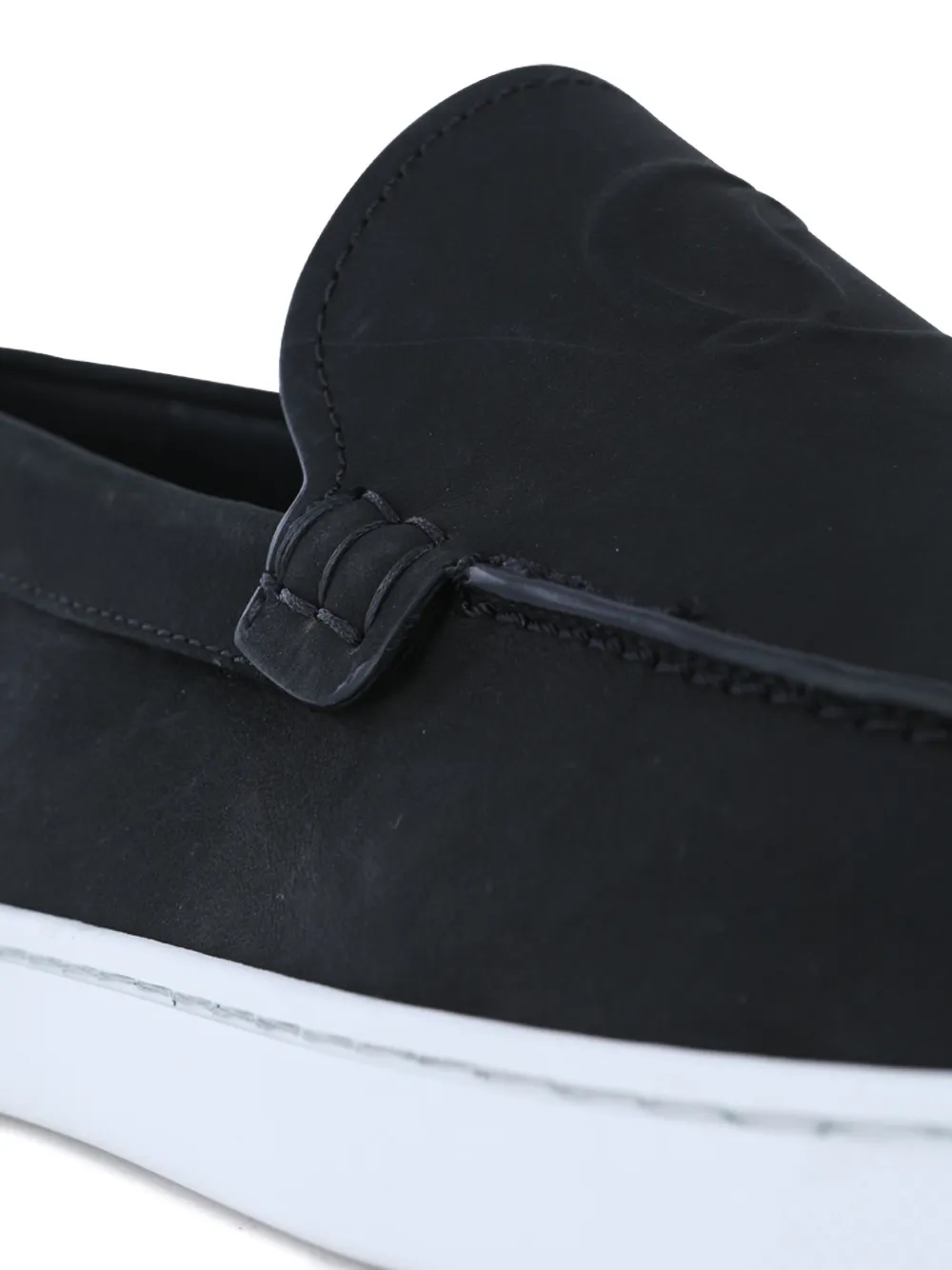 Черный верх из кожи дизайн без застежек тисненый логотип плоская подошва