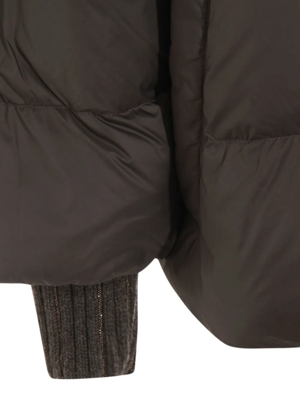 Темно-серый стеганый дизайн застежка-молния капюшон на кулиске вязаные манжеты