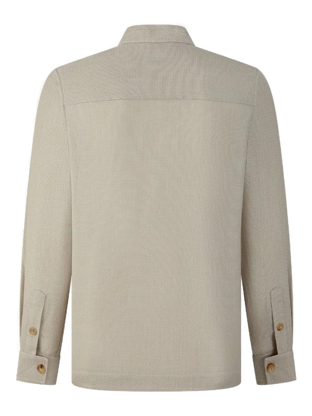 Кремовый цвет, стойка-воротник, застежка на пуговицы, накладные карманы с клапанами, длинные рукава